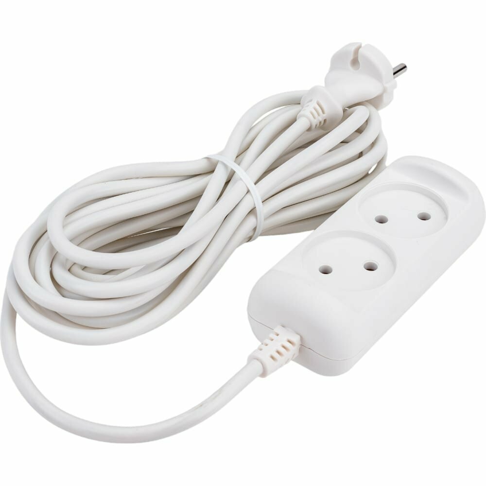 Купить Удлинитель 2гн без З/К 5м белый 10А ПВС 2х1 U-2-5m ЭРА (1/10/840)