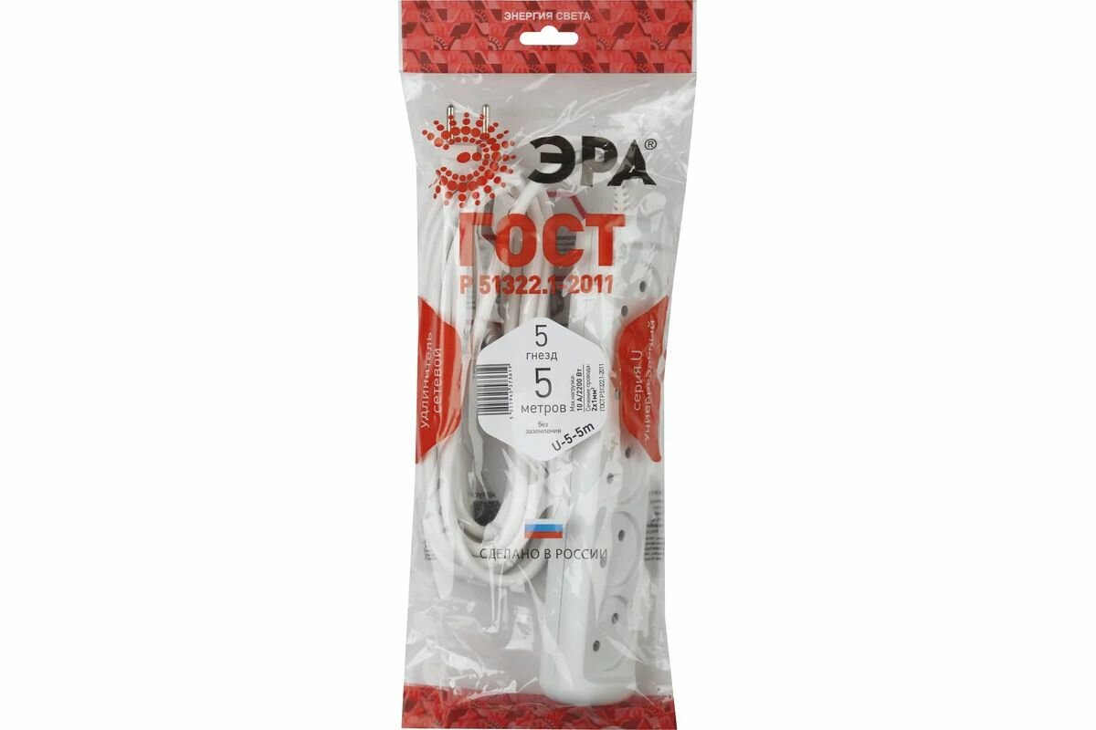 Удлинитель ЭРА U-5-5m без заземления 5 розеток 5м 10А