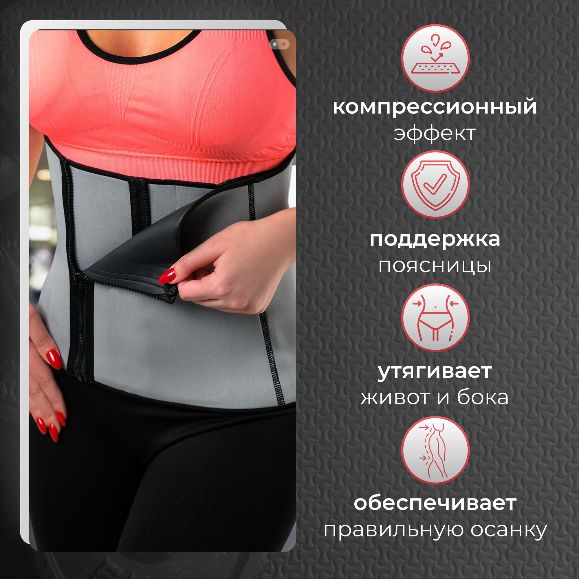 Пояс суппорт ONLITOP, цвет серый интересное: