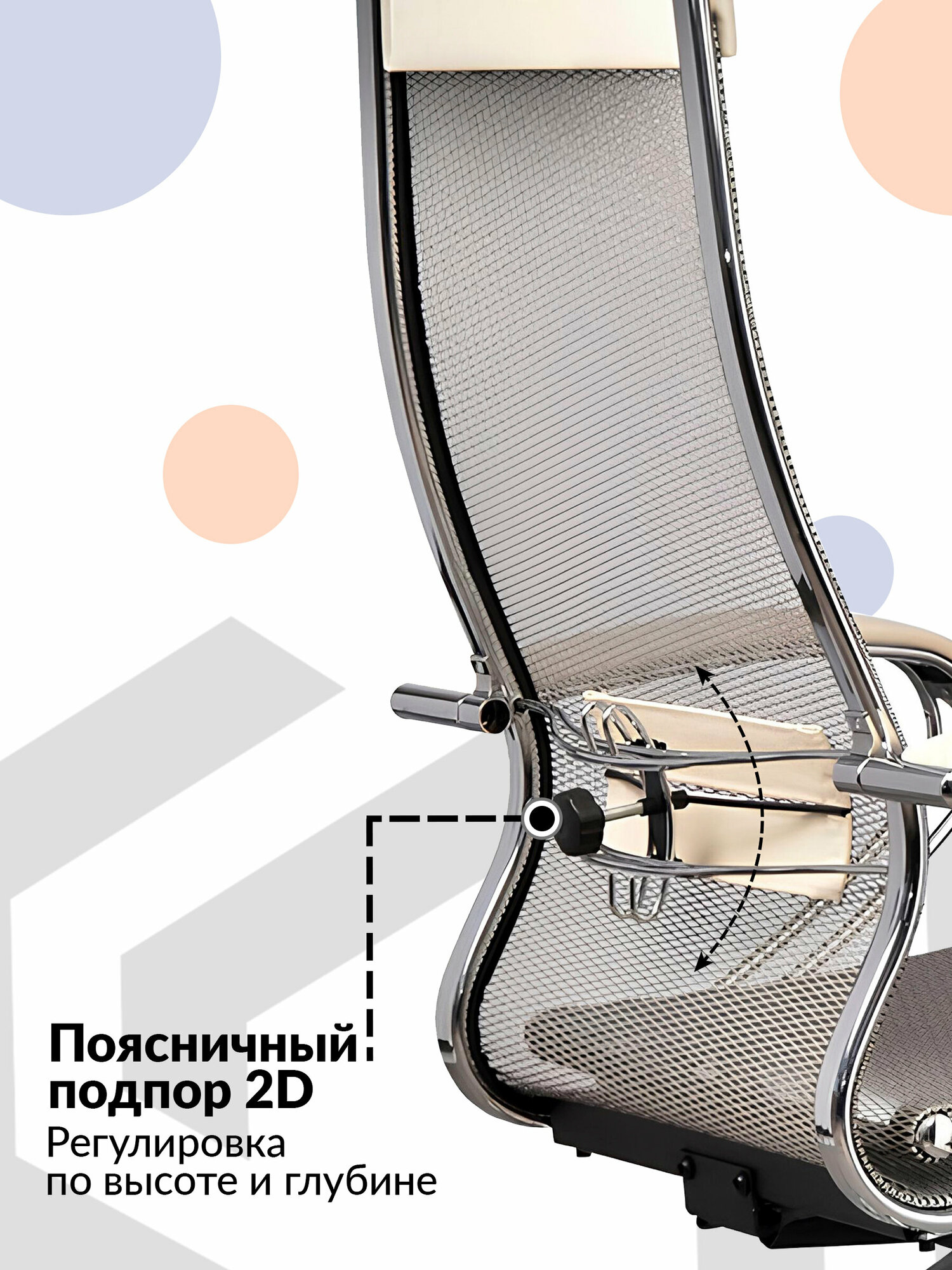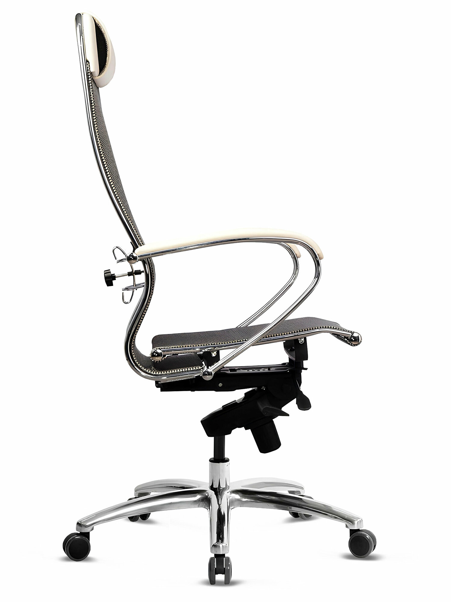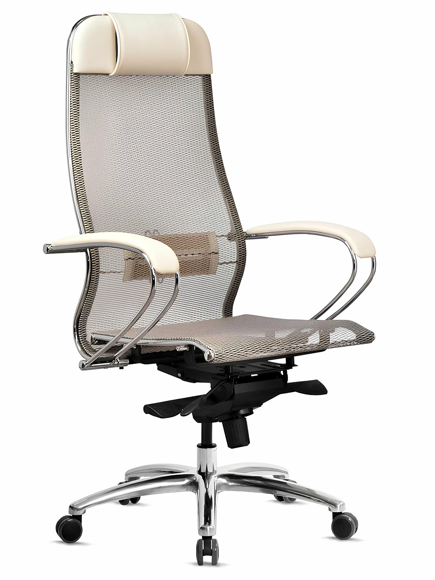 Кресло METTA компьютерное молочное, сетка, экокожа, крестовина металл - Кресло руководителя, с подголовником