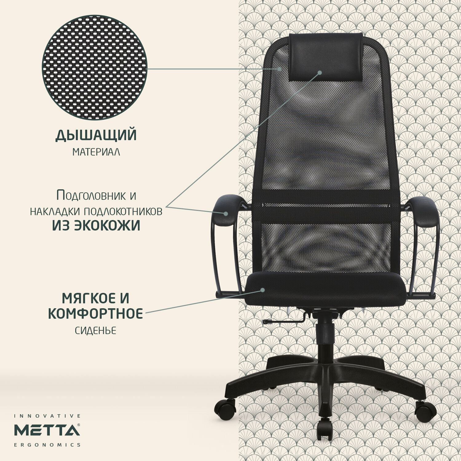 Кресло компьютерное метта SU-B-8/подл.130/осн.001 z312471632, черное, мягкая сетка, офисное, до 120кг