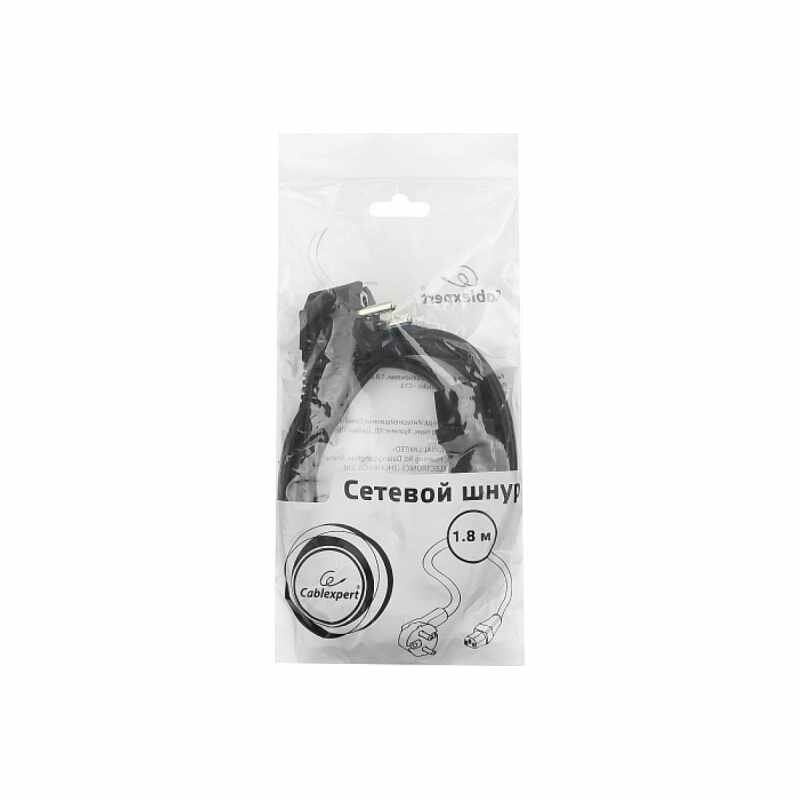 Cablexpert Кабель питания Pc-186-1-1.8m 1.8м Schuko- C13 3x1кв.мм черный с заземлением пакет
