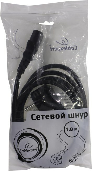 Cablexpert Кабель питания 1.8м, Schuko- C13, 3х1кв.мм, черный, с заземлением, пакет (PC-186-1-1.8M)