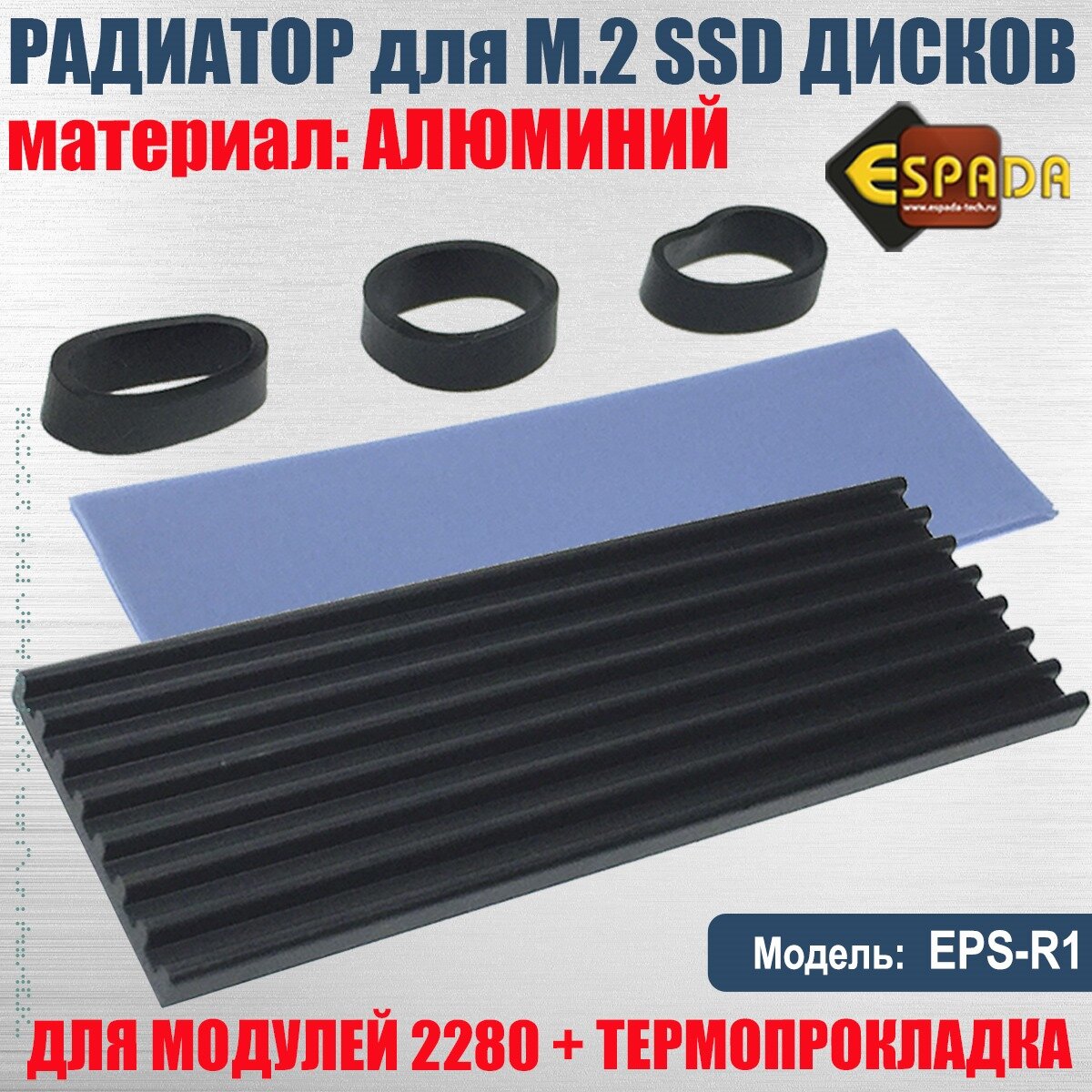 Радиатор для SSD M.2 2280 алюминиевый, модель ESP-R1, Espada
