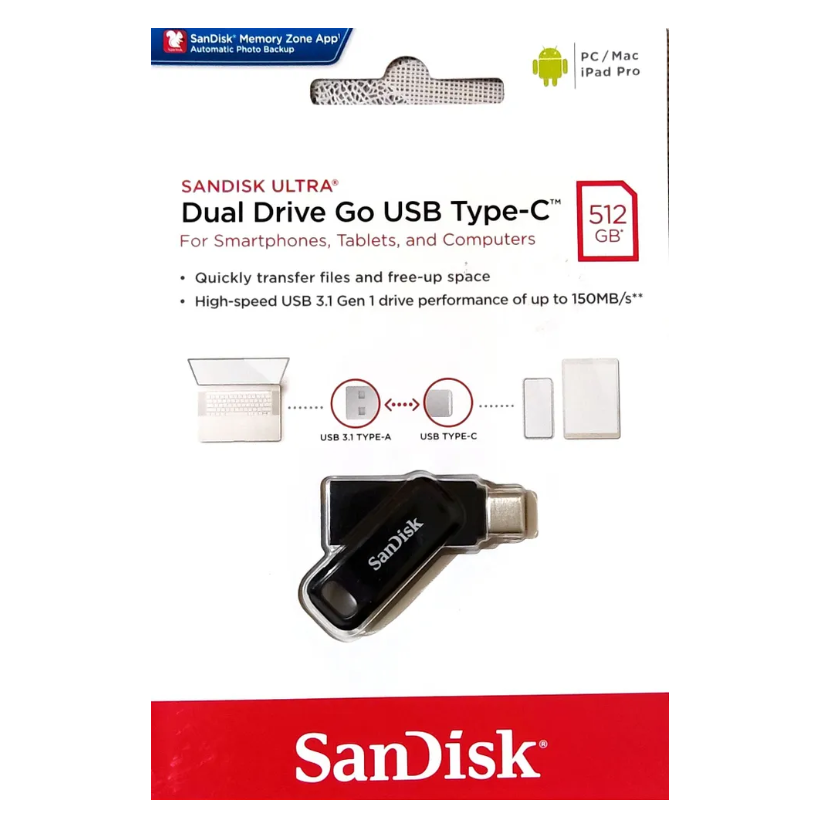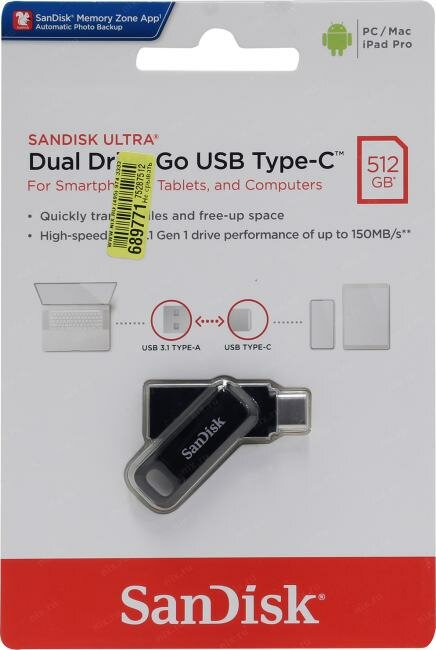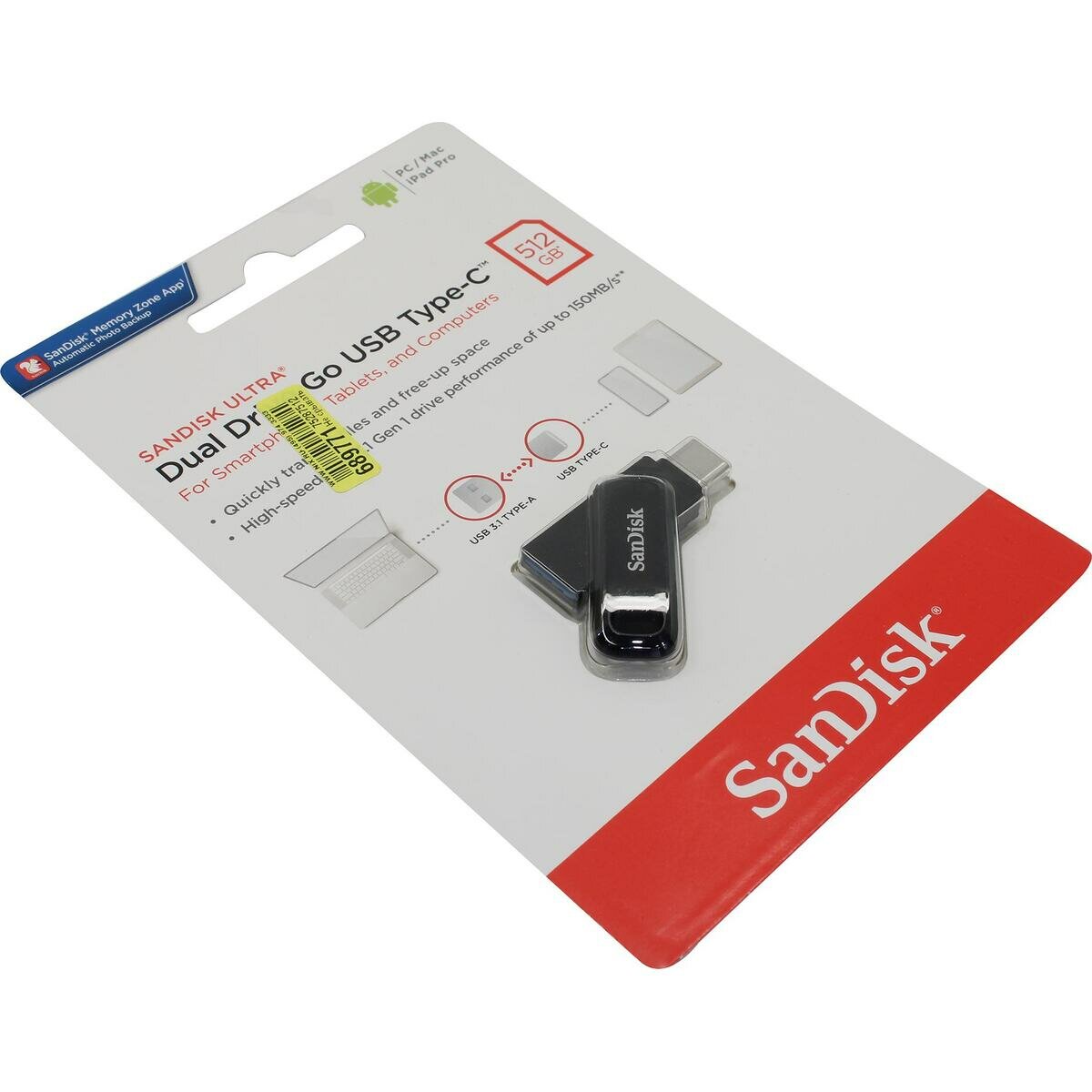 USB флешка Sandisk 512Gb Ultra Dual Drive Go USB 3.1 gen 1/ USB Type-C 150 Mb/s