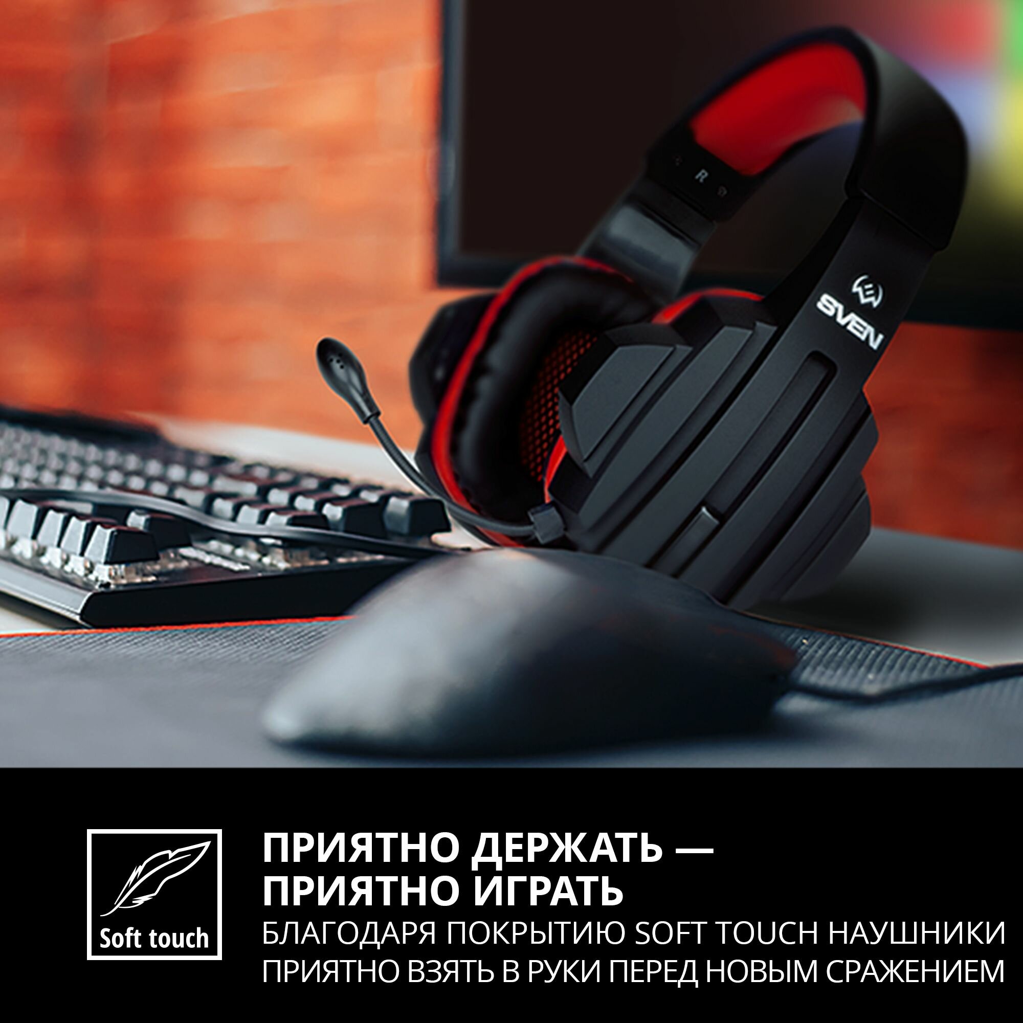 Гарнитура игровая Sven AP-G300MV, для компьютера, накладные, проводные, черный / красный [sv-019372]