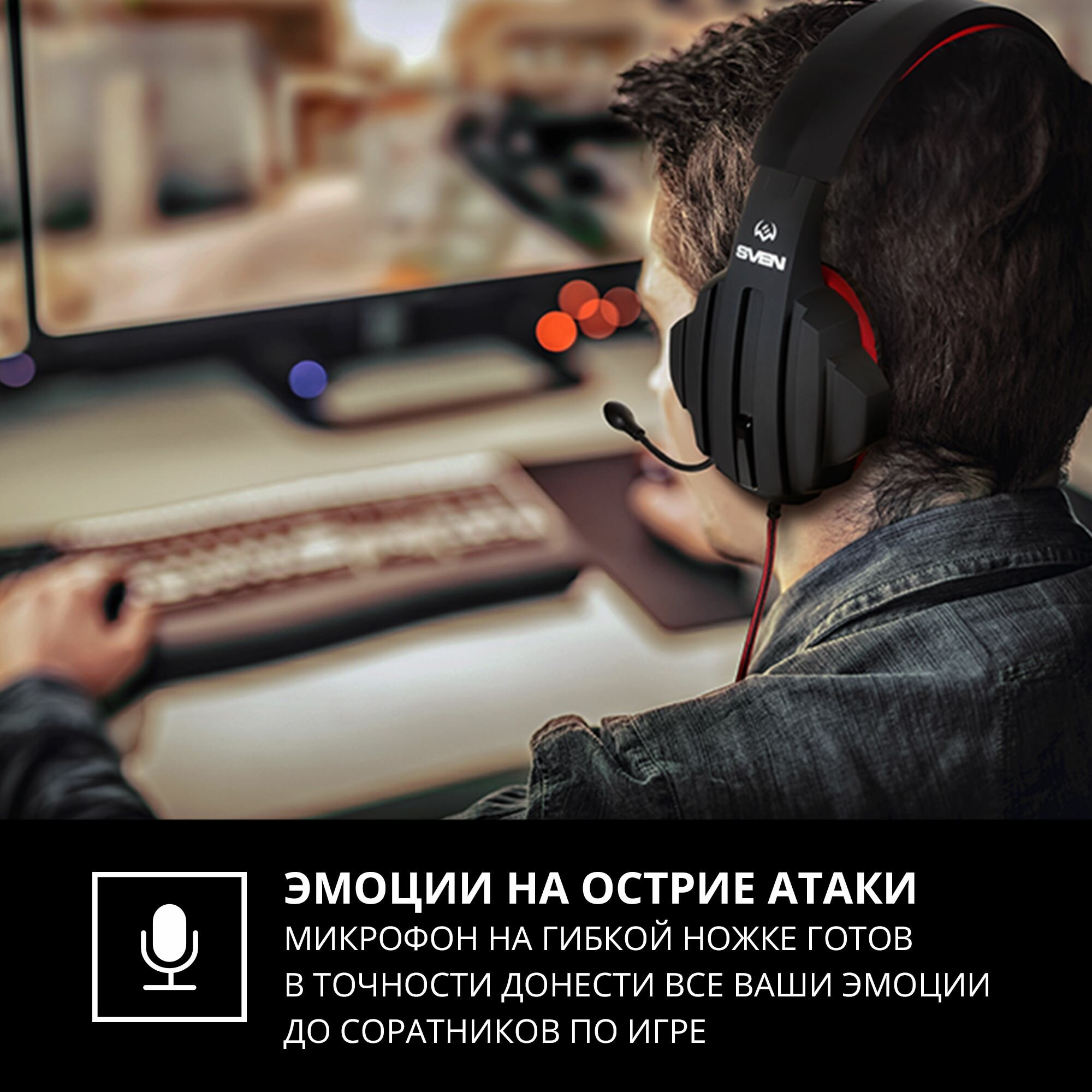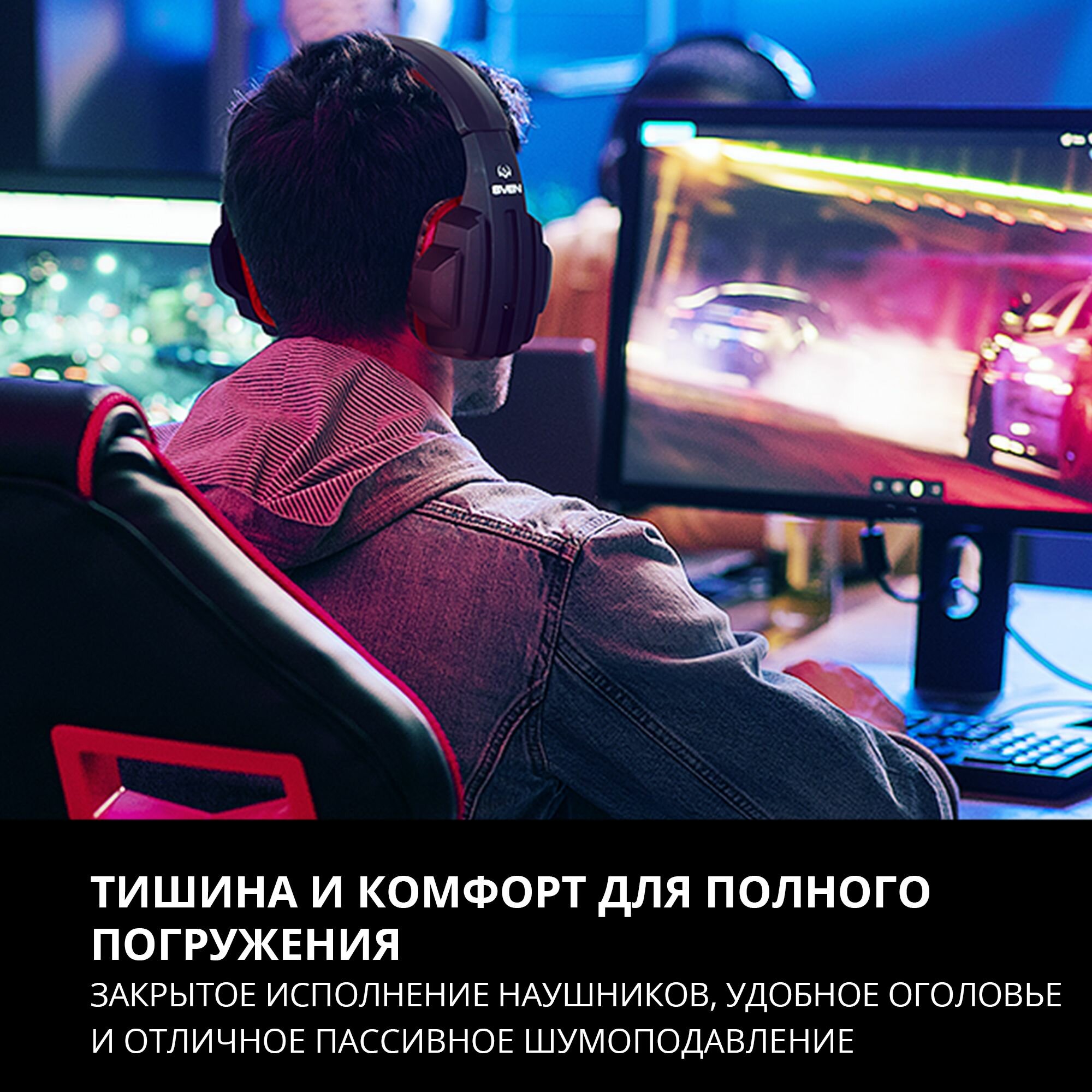 Наушники с микрофоном Sven AP-G300MV игровые полноразмерная компьютерная гарнитура чёрно-красные