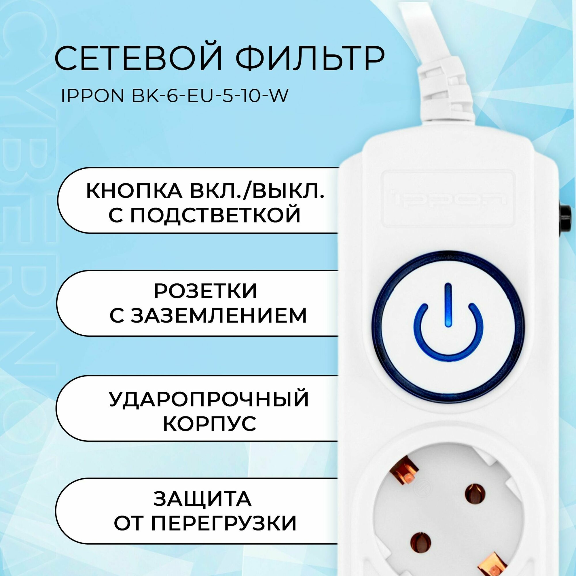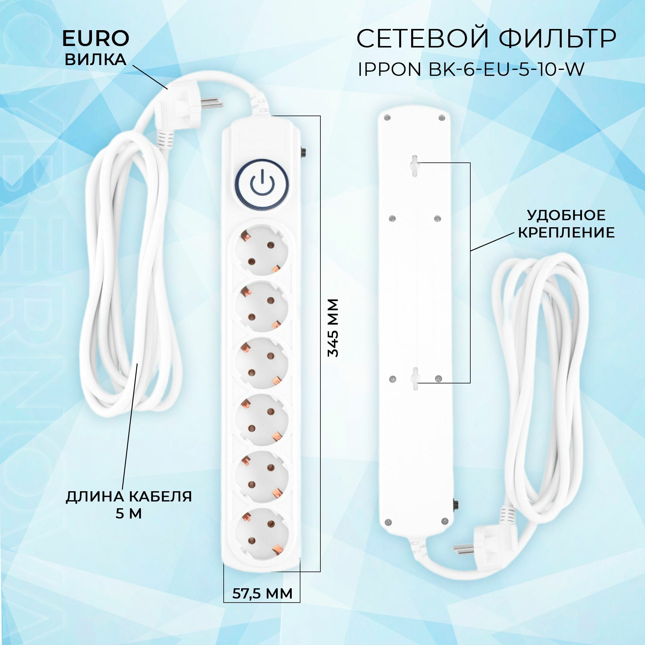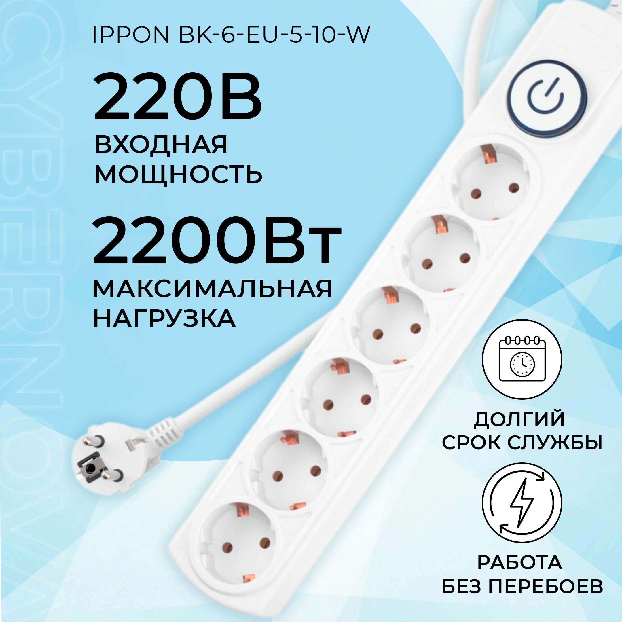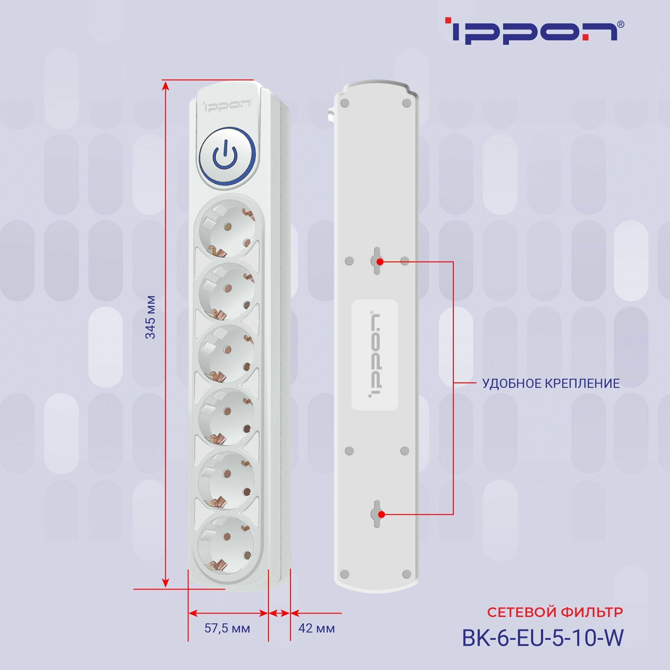 СохранитьСетевой фильтр Ippon BK-6-EU-5-10-W 5м (6 розеток) белый (коробка) интересное: