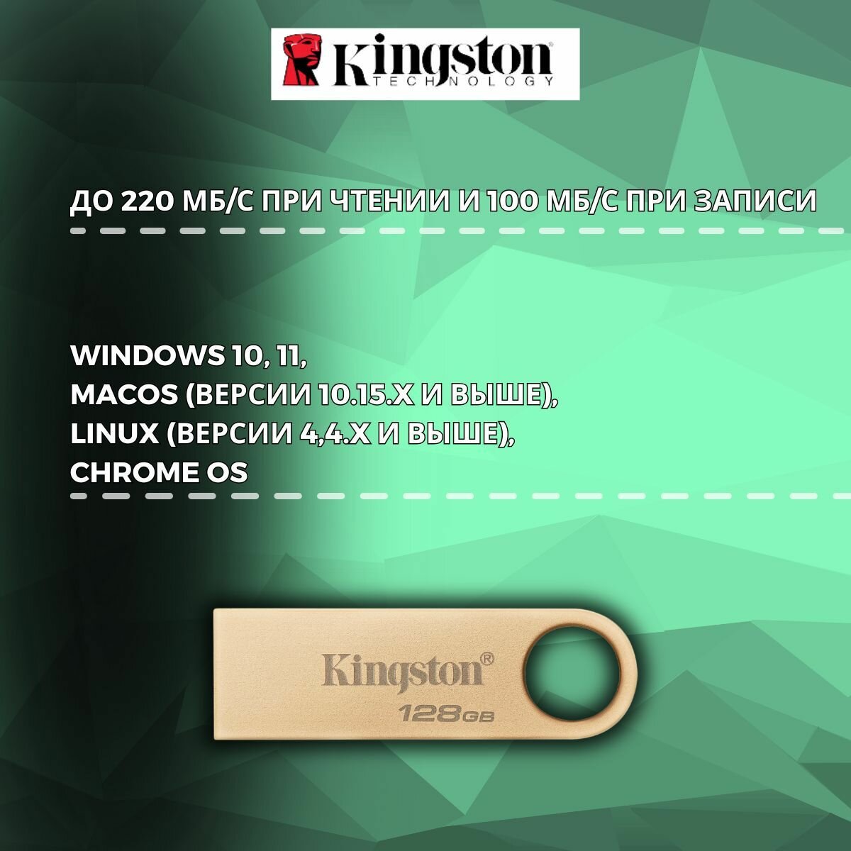 Флеш Диск Kingston 128Gb DataTraveler KYSON , (USB 3.2, 200 МБ/с при чтении, 60 МБ/с при записи)