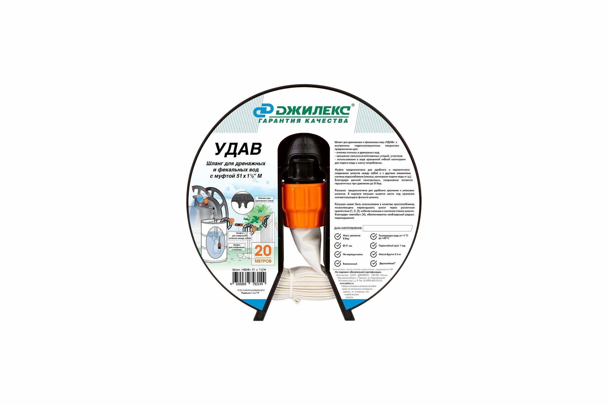 Шланг ДЖИЛЕКС ''Удав'' 51 мм с диаметром подключения 1 1/2'', 20 м белый