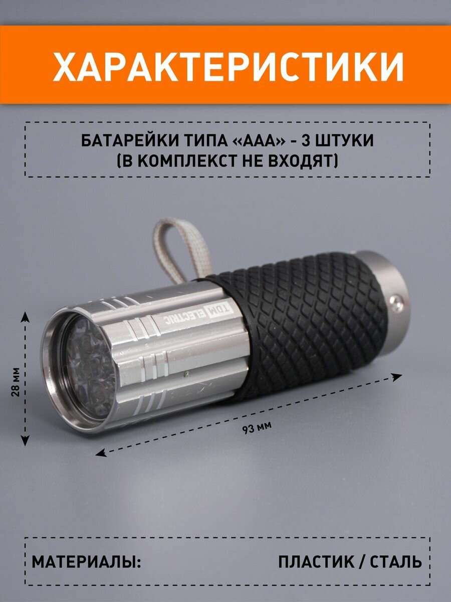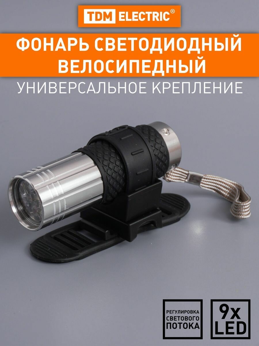 Фонарь светодиодный "Велосипедный 2" с креплением, 9 LED, 30 лм/Вт, 3*AAA TDM Артикул SQ0350-0028