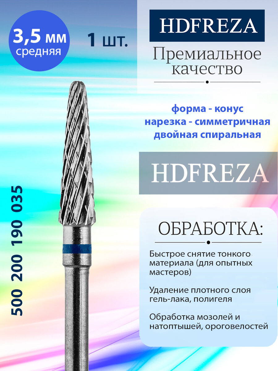 Фреза для маникюра и педикюра HDFREZA твердосплавная для снятия покрытия 500 200 190 035 Средняя конус интересное: