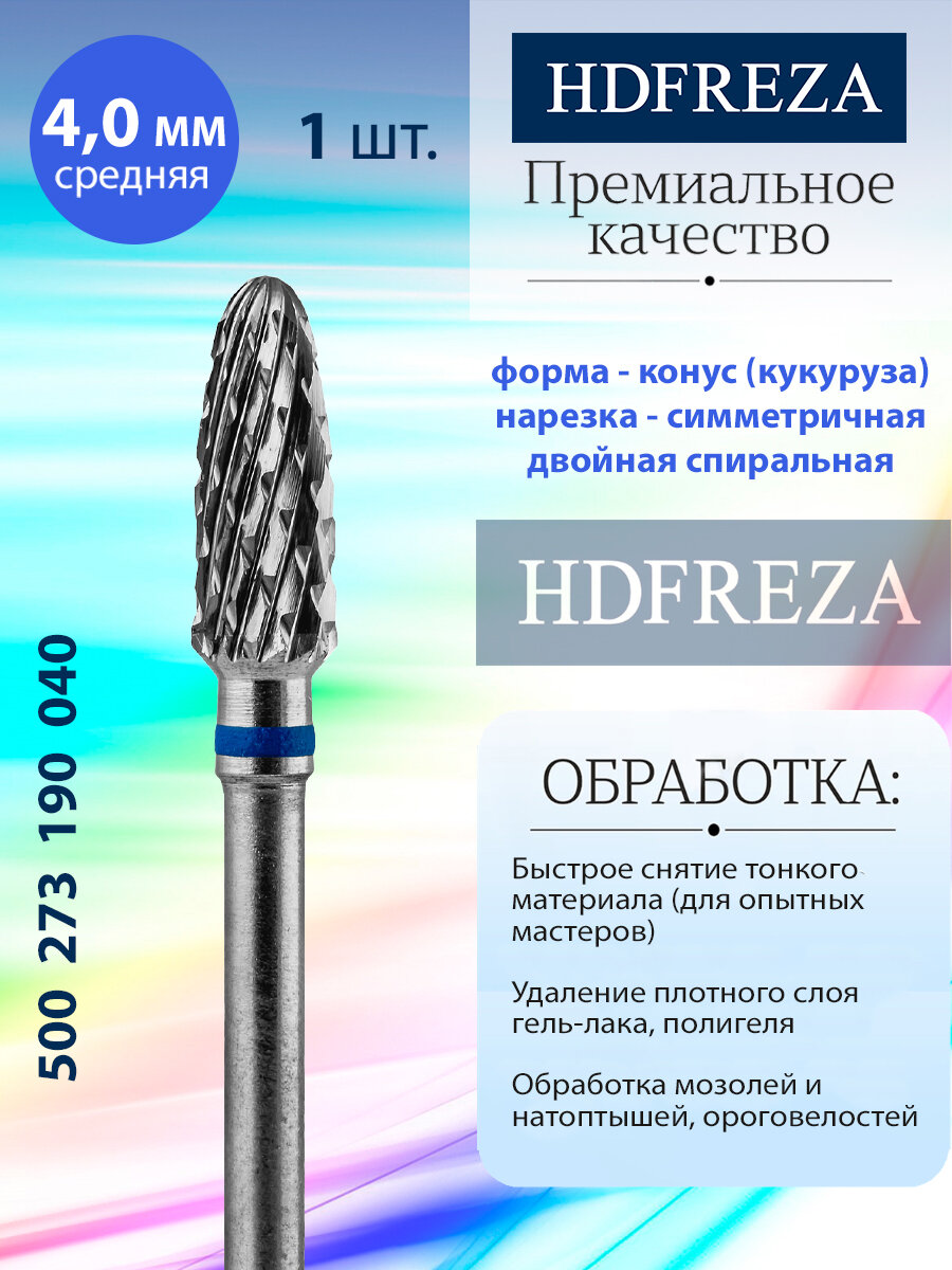 Купить Фреза для маникюра и педикюра HDFREZA твердосплавная для снятия покрытия 500 273 190 040 Средняя конус