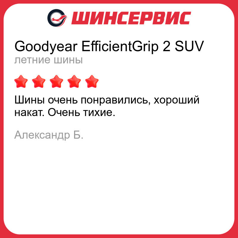 Ниже Вы можете прочитать отзывы на Летняя шина Goodyear EfficientGrip 2 SUV 235/60 R18 107V, ознакомится с подробными характеристиками, посмотреть интересные обзоры и фотографии на Летняя шина Goodyear EfficientGrip 2 SUV 235/60 R18 107V.