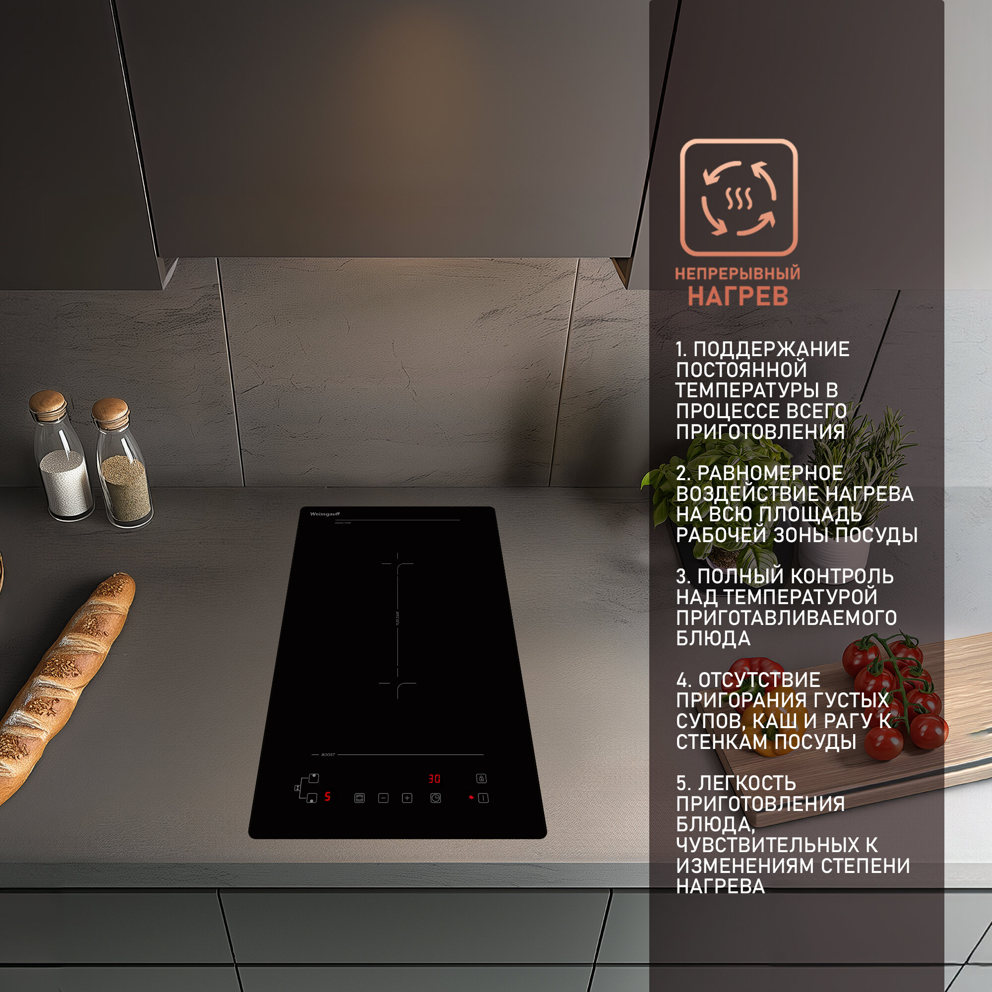 Индукционная варочная панель Weissgauff HI 32 BFZC, 3 года гарантии, 30 см ширина, таймер, защитное автоотключение интересное: