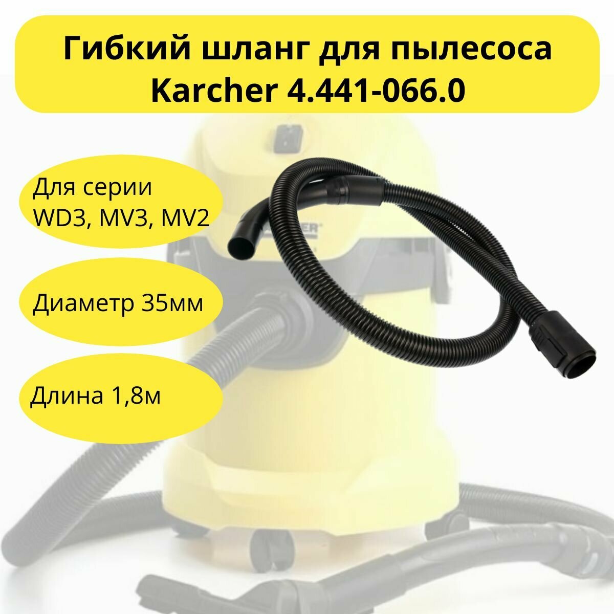 Гибкий шланг для пылесоса Karcher WD3, MV3, MV2, код 4.441-066.0 интересное: