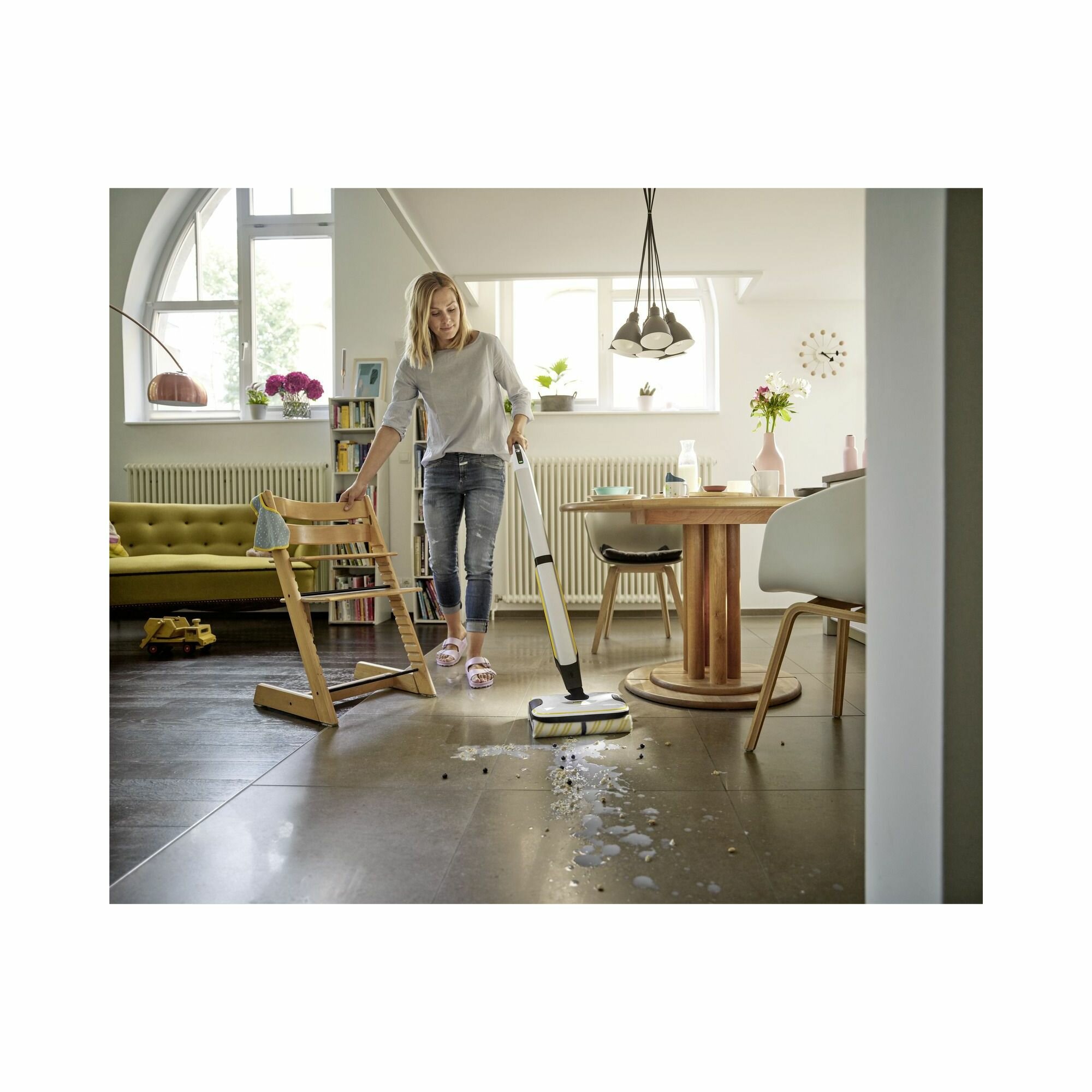 Электрошвабра Karcher FC 7 Signature Line 1.055-709.0, с системой 2 резервуаров, регулировка скорости вращения щеток и расхода воды, светодиодная подсветка