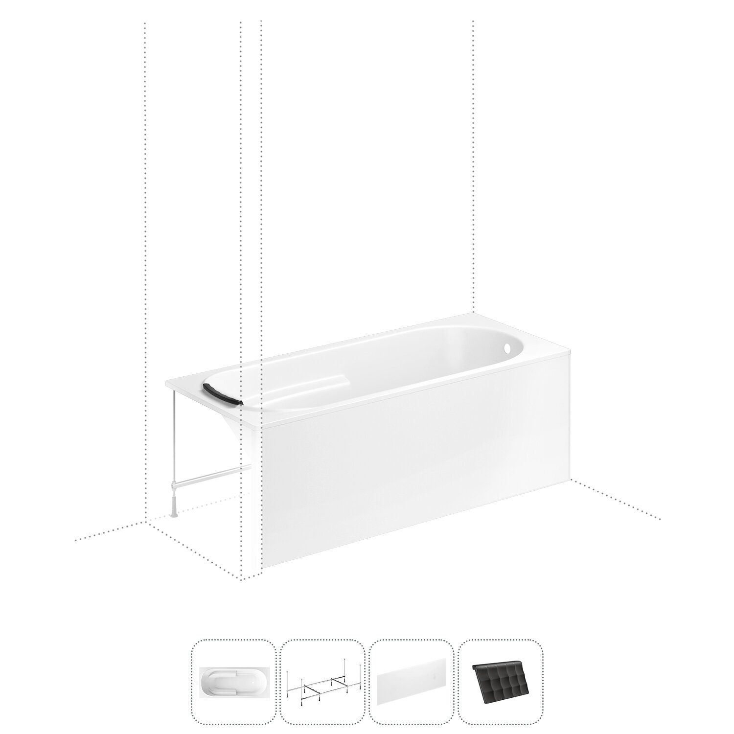 Купить Акриловая ванна 170x75 с каркасом и экраном Lavinia Boho Bristol S2-3502007P в наборе 4 в 1: прямоугольная ванна 170 x 75 см, каркас, экран, подголовник