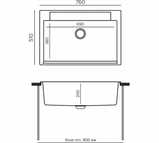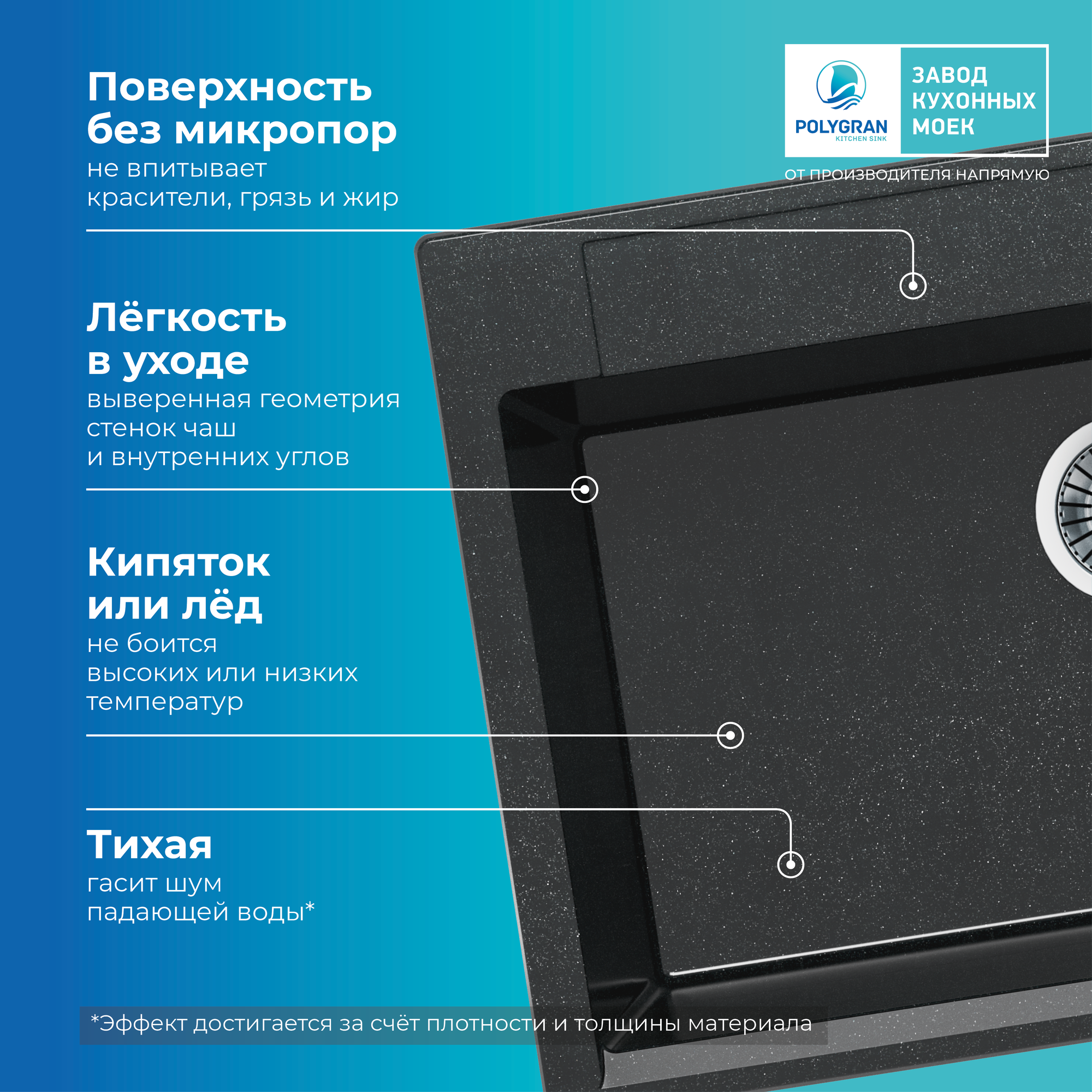 Polygran ARGO-760, мойка, мрамор, черный 16