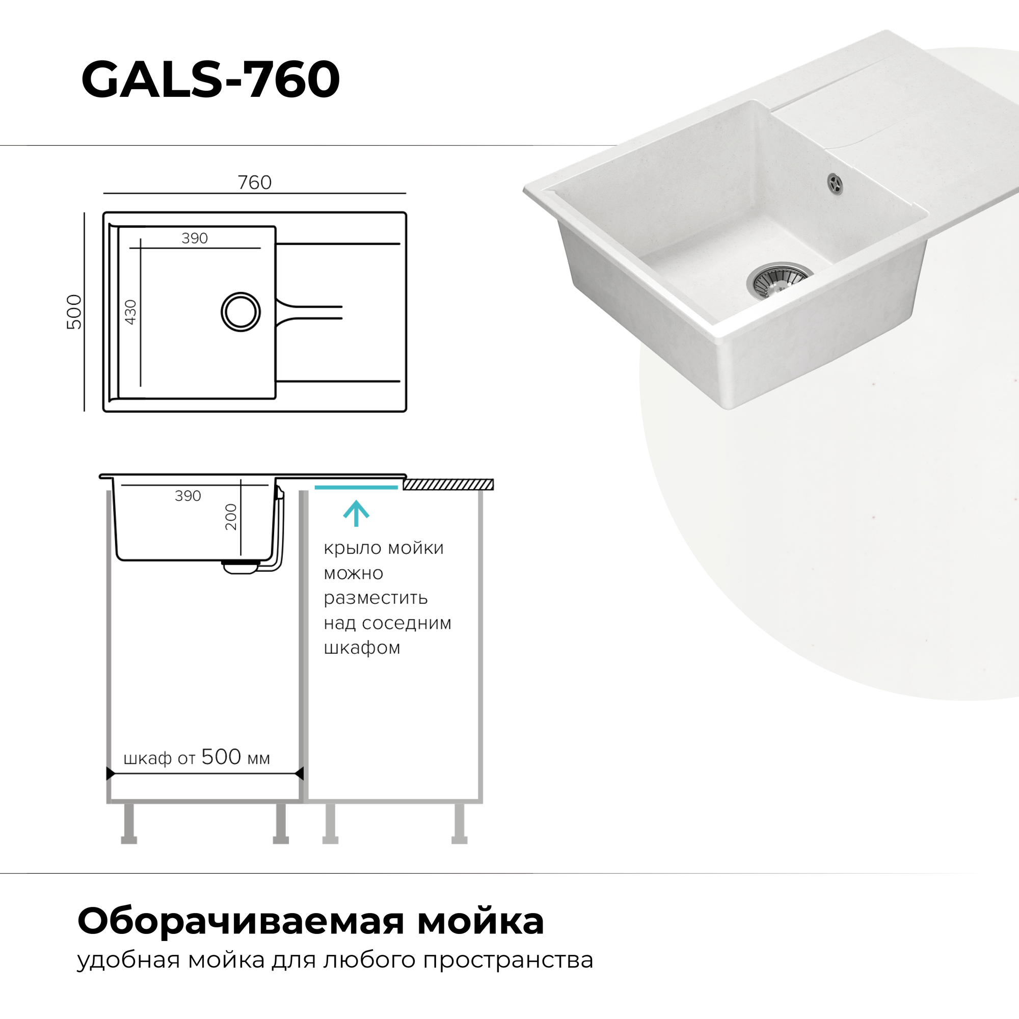 Мойки Polygran GALS-760, мойка, мрамор, черный 16