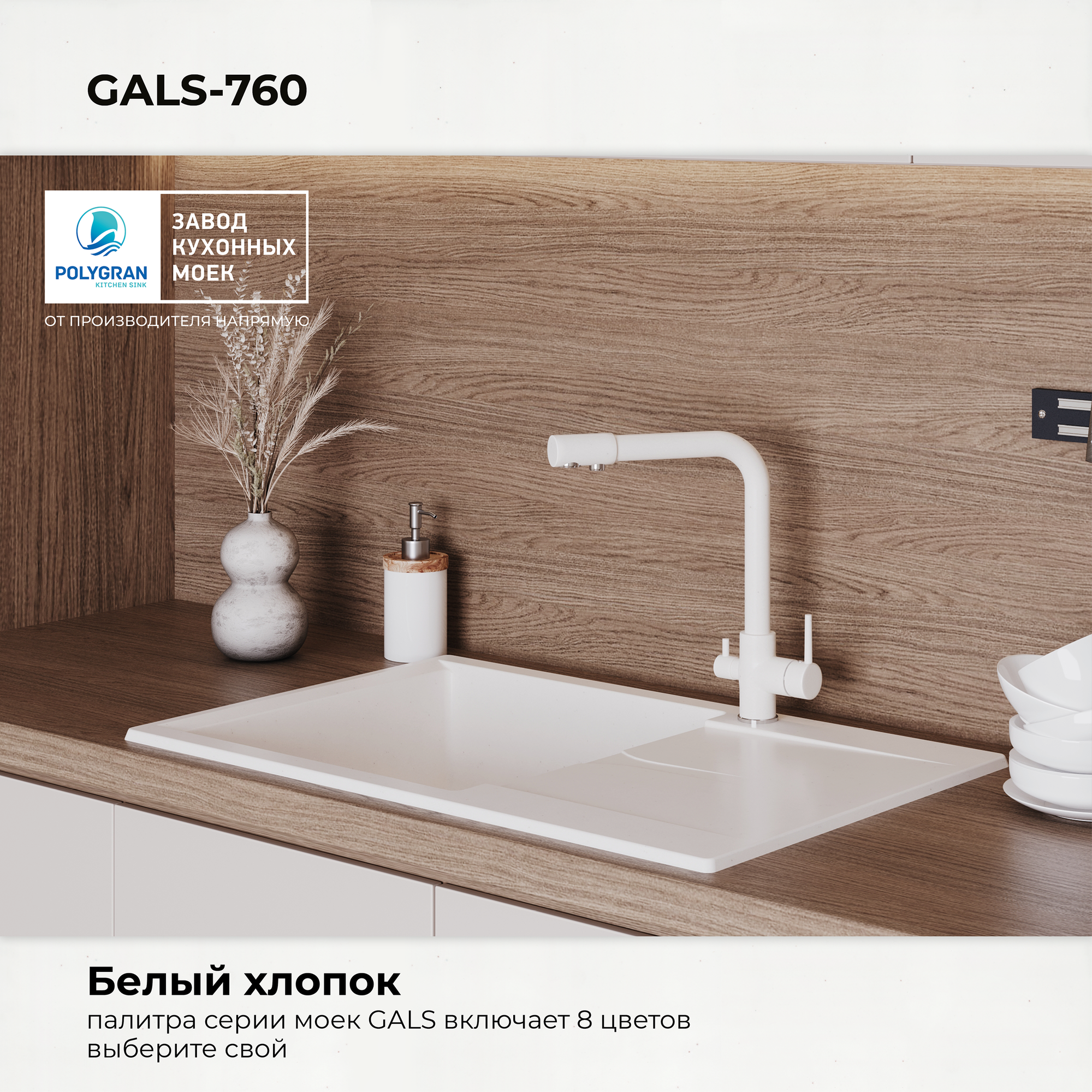 Мойка для кухни Polygran Gals-760 (36, белый хлопок)