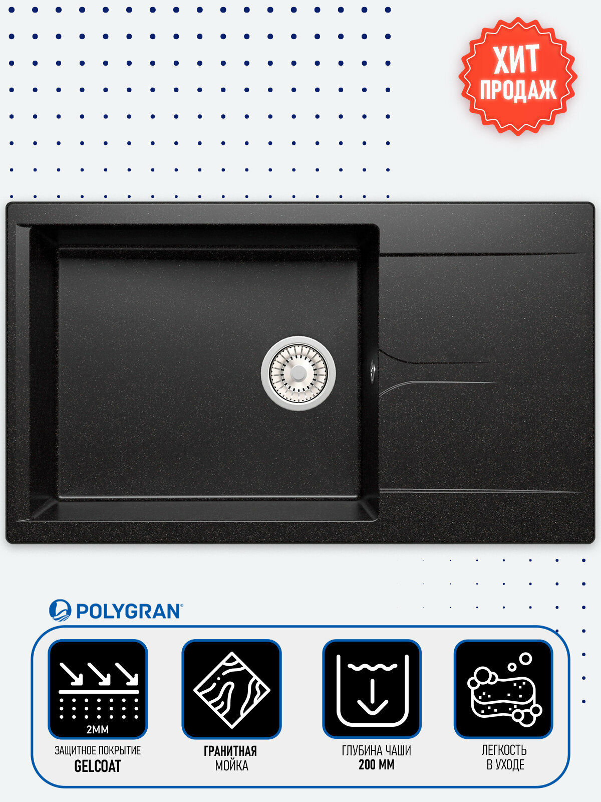 Polygran Кухонная мойка Polygran Gals-862 черный 444591