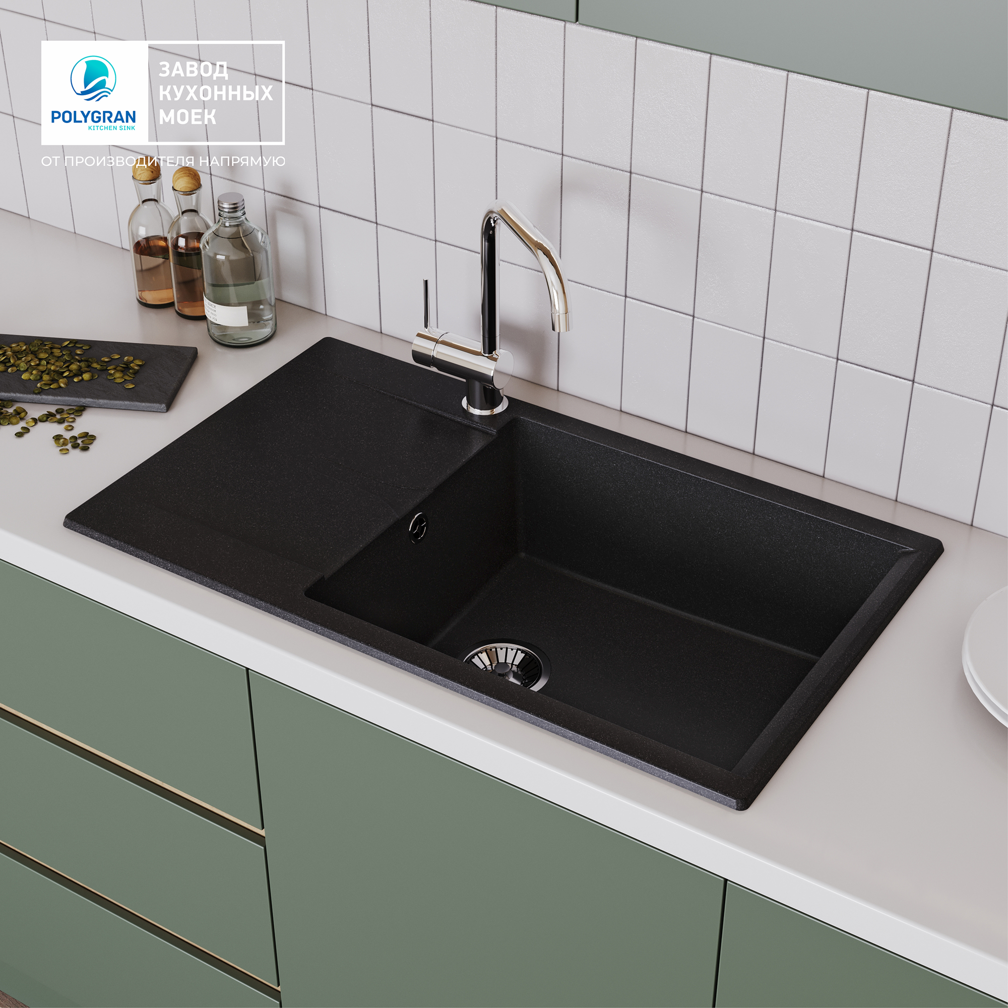 Купить Мойка для кухни POLYGRAN Gals-862 каменная с удлиненным крылом (№16 Черный)