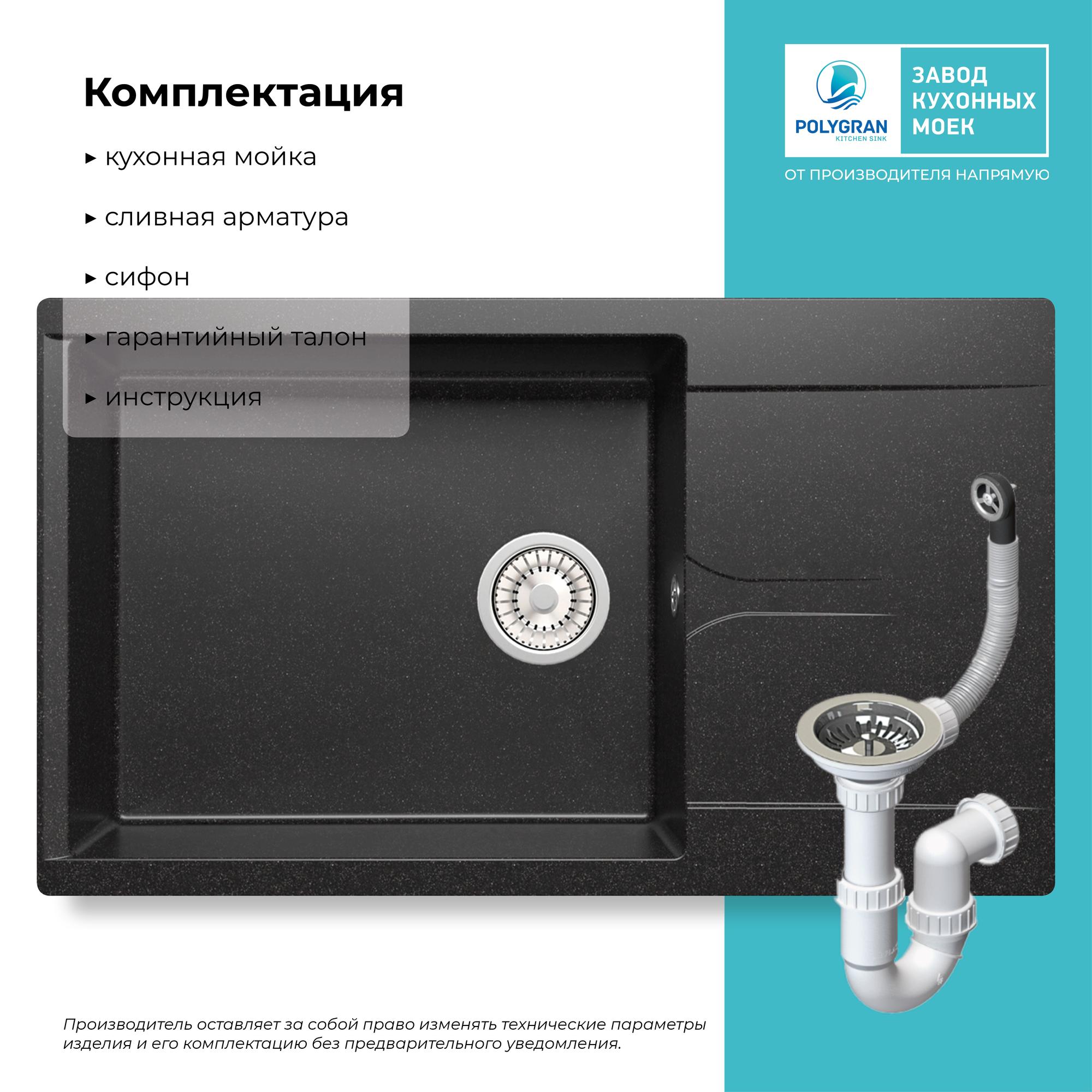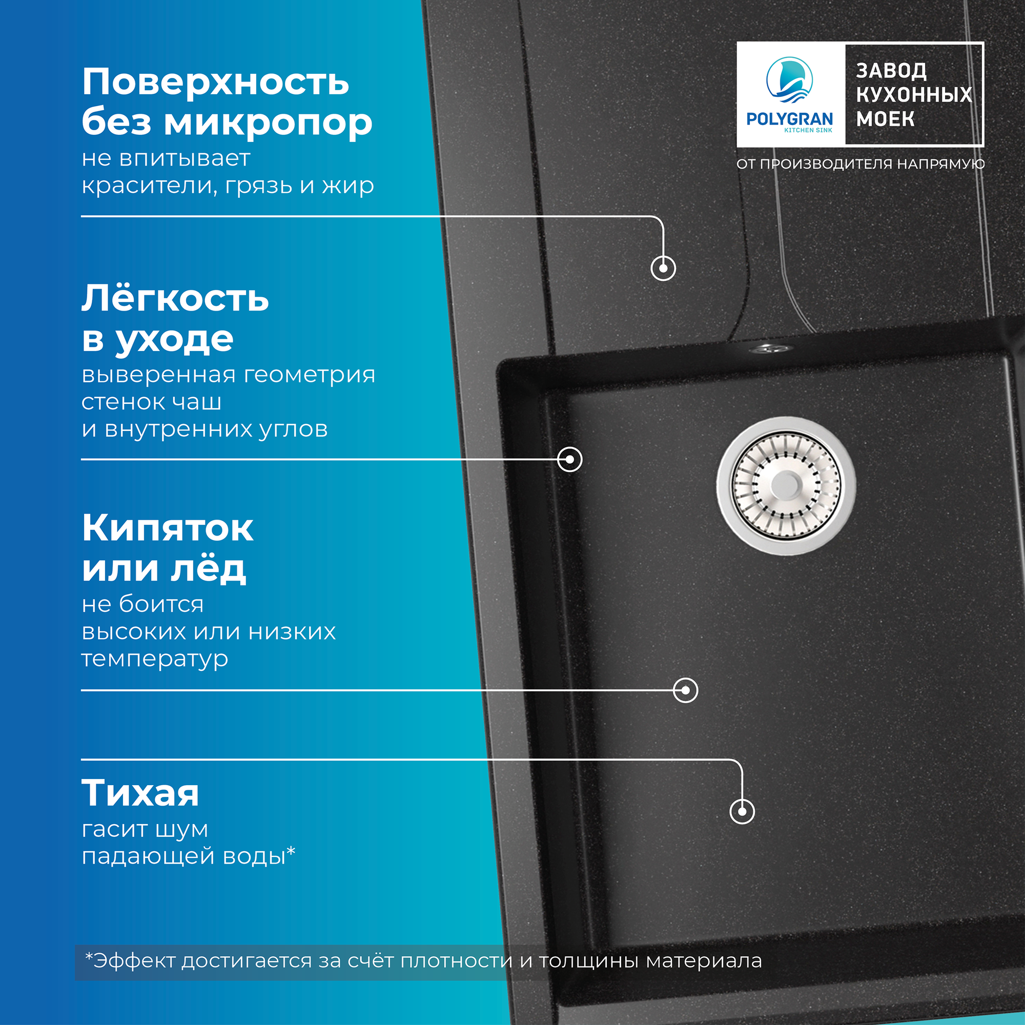 Polygran Мойка из искусственного мрамора Polygran GALS-862, мойка, мрамор, черный 16