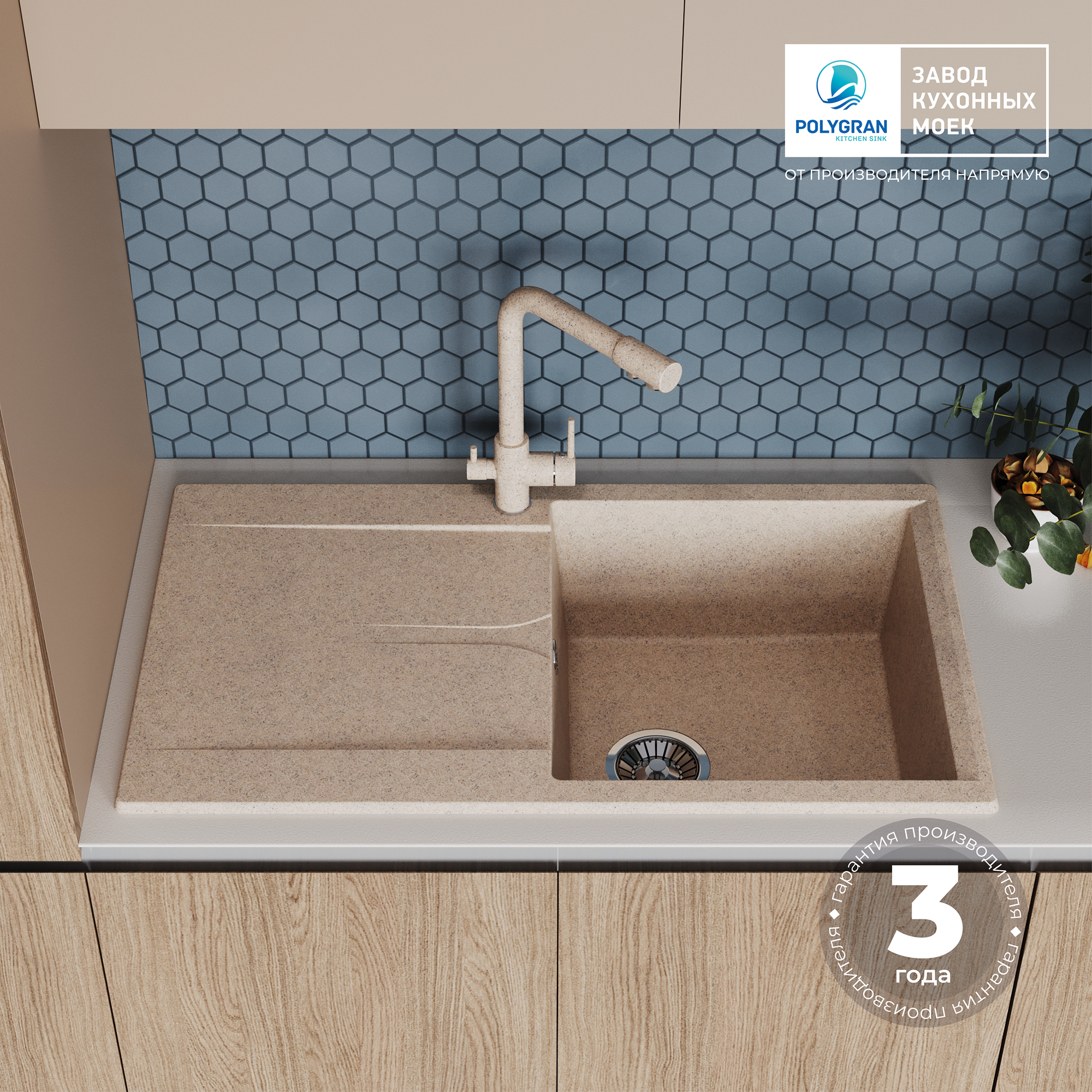 СохранитьМойка для кухни POLYGRAN Gals-860 каменная, врезная, раковина кухонная с удлиненным крылом(№302 Песочный) интересное: