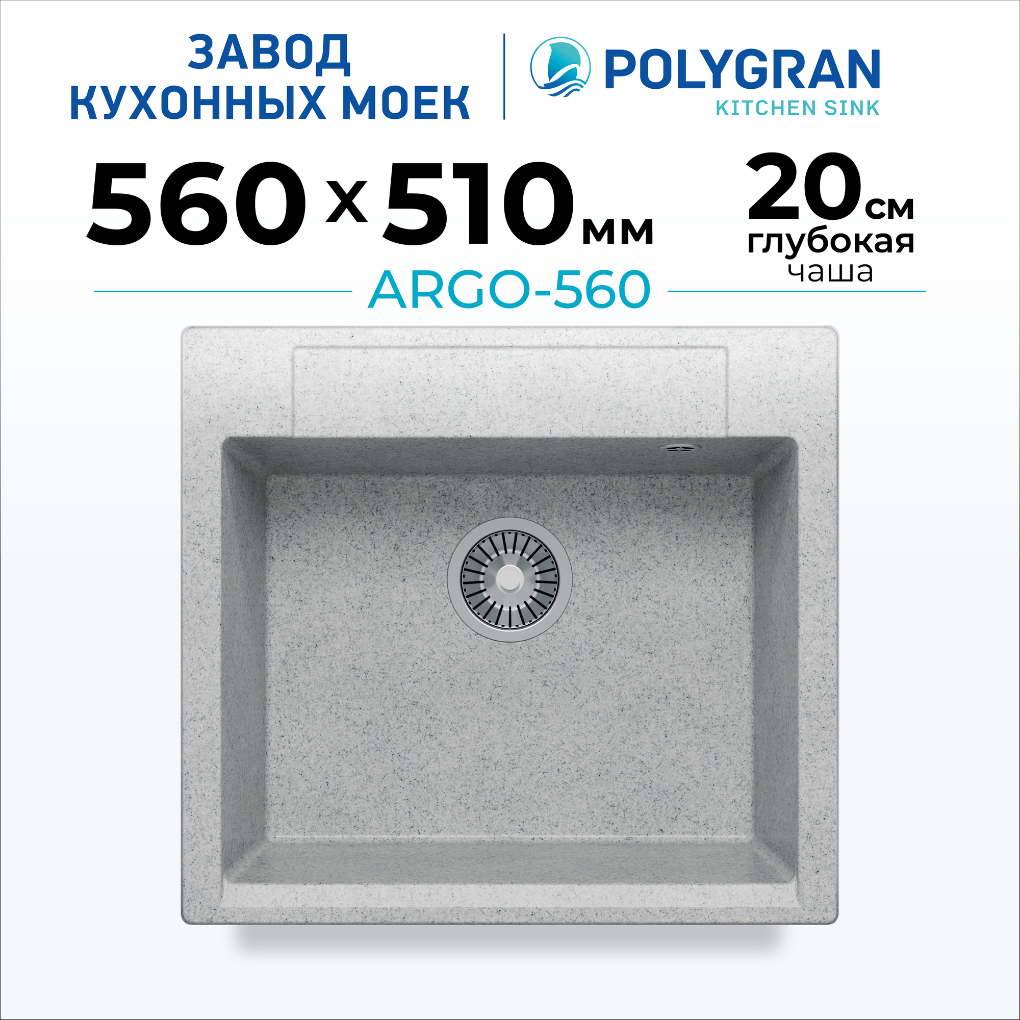 Кухонная мойка POLYGRAN Argo-560, искусственный гранит, 51см х 56см, белый