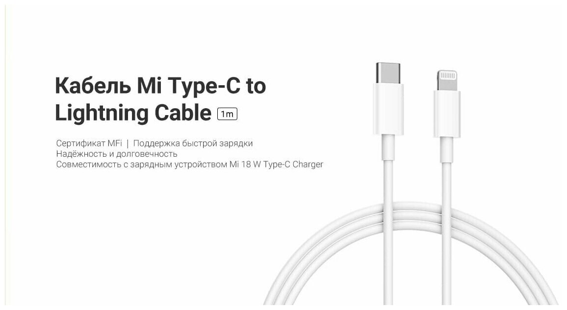 Кабель Xiaomi Mi USB Type-C - Lightning (BHR4421GL), 1 м, 1 шт., белый