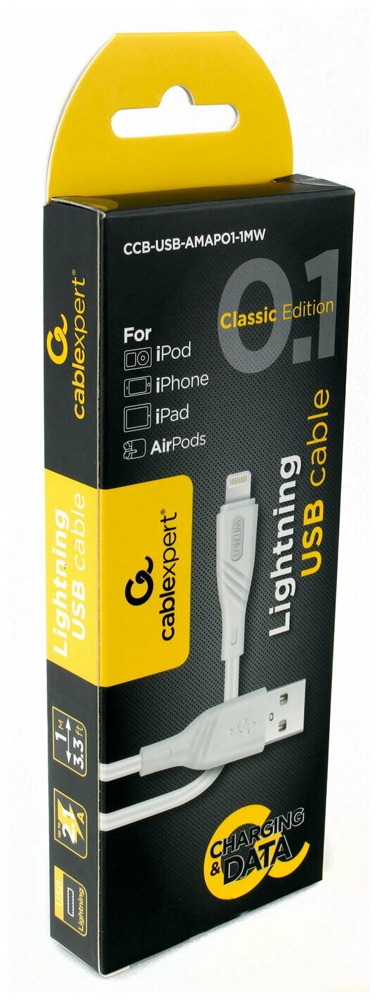 Купить Кабель Cablexpert для Apple CCB-USB-AMAPO1-1MW, AM/Lightning, издание Classic 0.1, длина 1м, белый, блистер