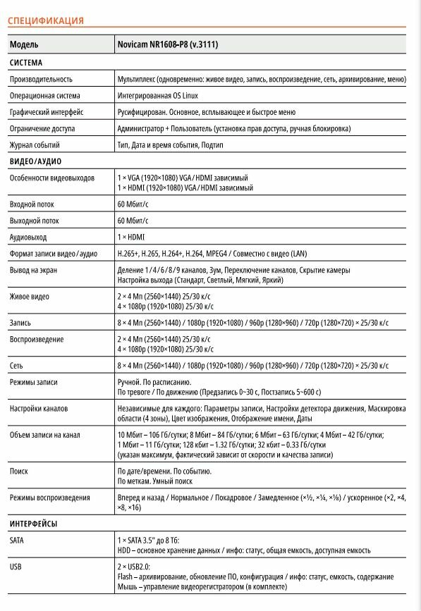 СохранитьNR1608-P8 Novicam v.3111 - IP видеорегистратор, запись 8 каналов IP 4Мп 30к/с, 1 HDD до 8 Тб, поддержка H.265+, 8 PoE каналов(IVMS 4.5 PRO, Hik-Connect, Guarding Vision) интересное:
