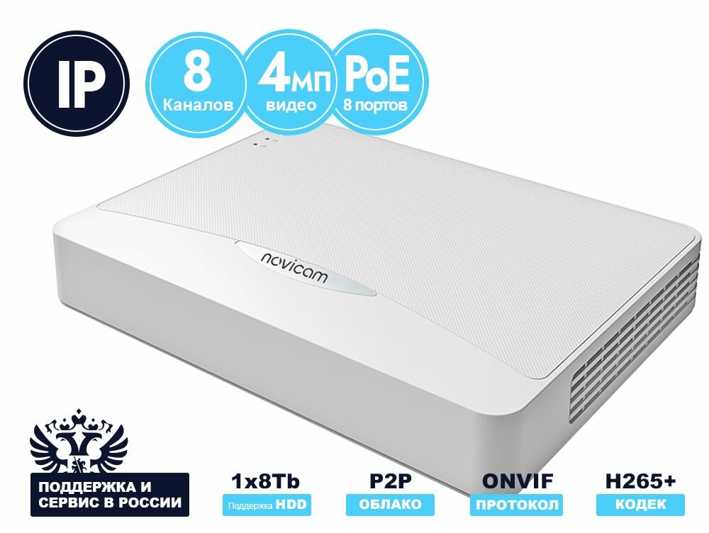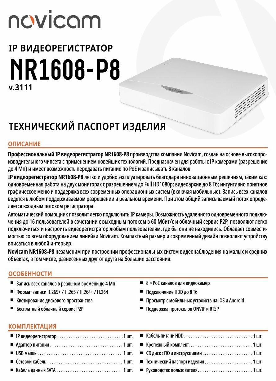Купить NR1608-P8 Novicam v.3111 - IP видеорегистратор, запись 8 каналов IP 4Мп 30к/с, 1 HDD до 8 Тб, поддержка H.265+, 8 PoE каналов(IVMS 4.5 PRO, Hik-Connect, Guarding Vision)