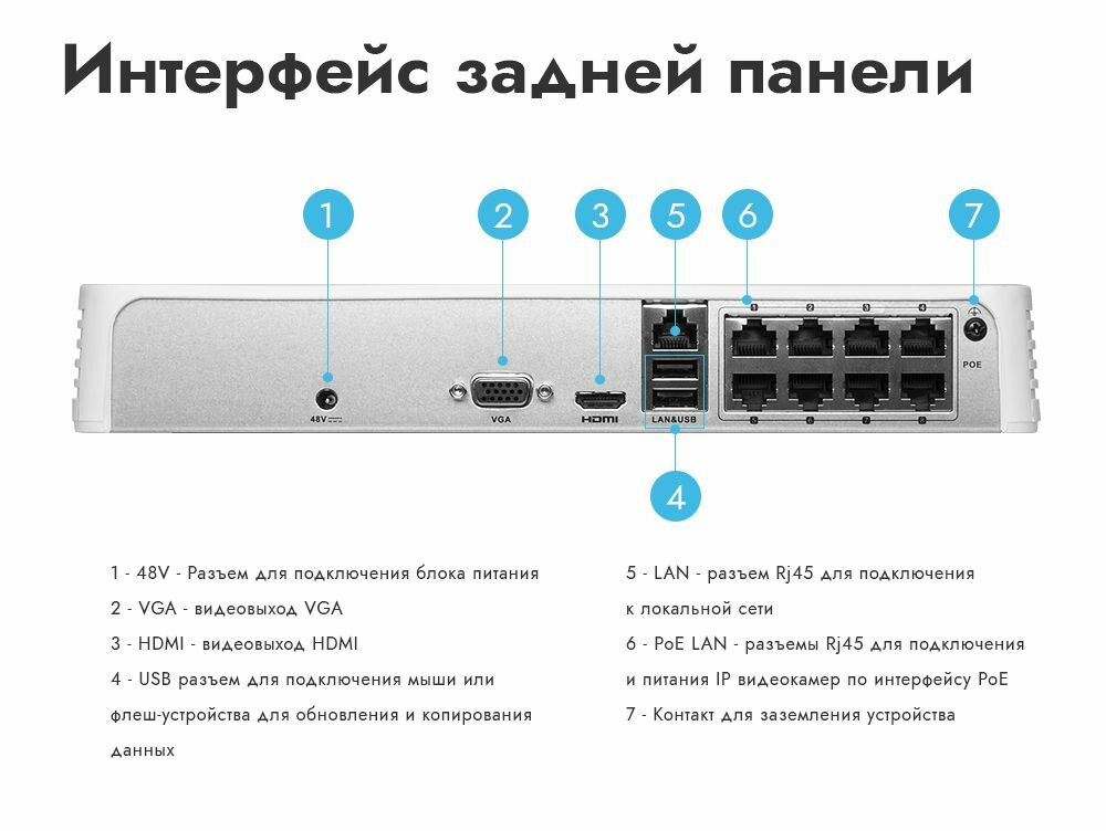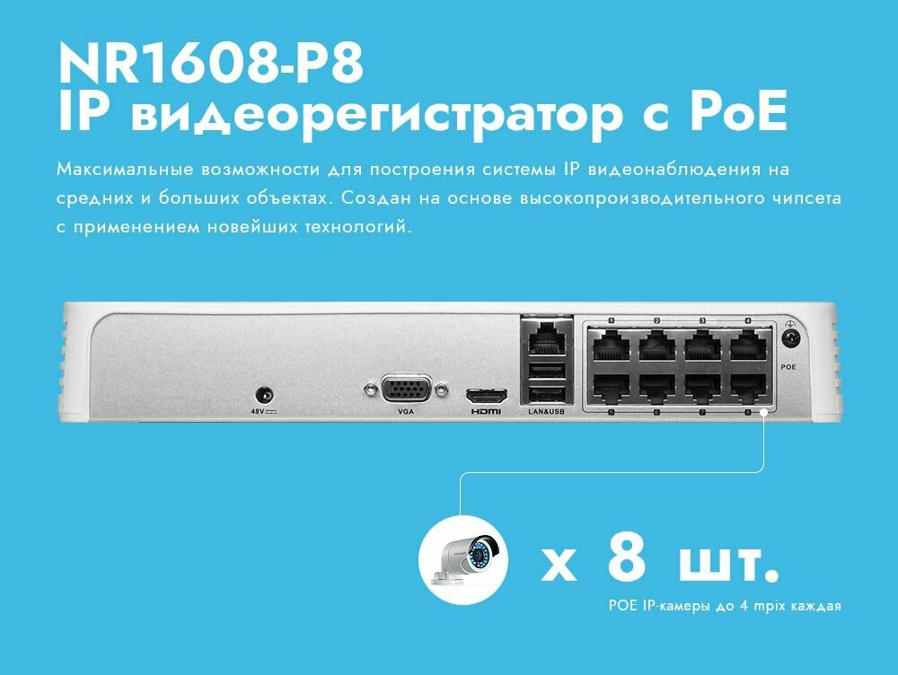 NR1608-P8 Novicam v.3078 - IP видеорегистратор, запись 8 каналов IP 4Мп 30к/с, 1 HDD до 8 Тб, поддержка H.265+, 8 PoE каналов(IVMS 4.5 PRO, Hik-Connect, Guarding Vision)