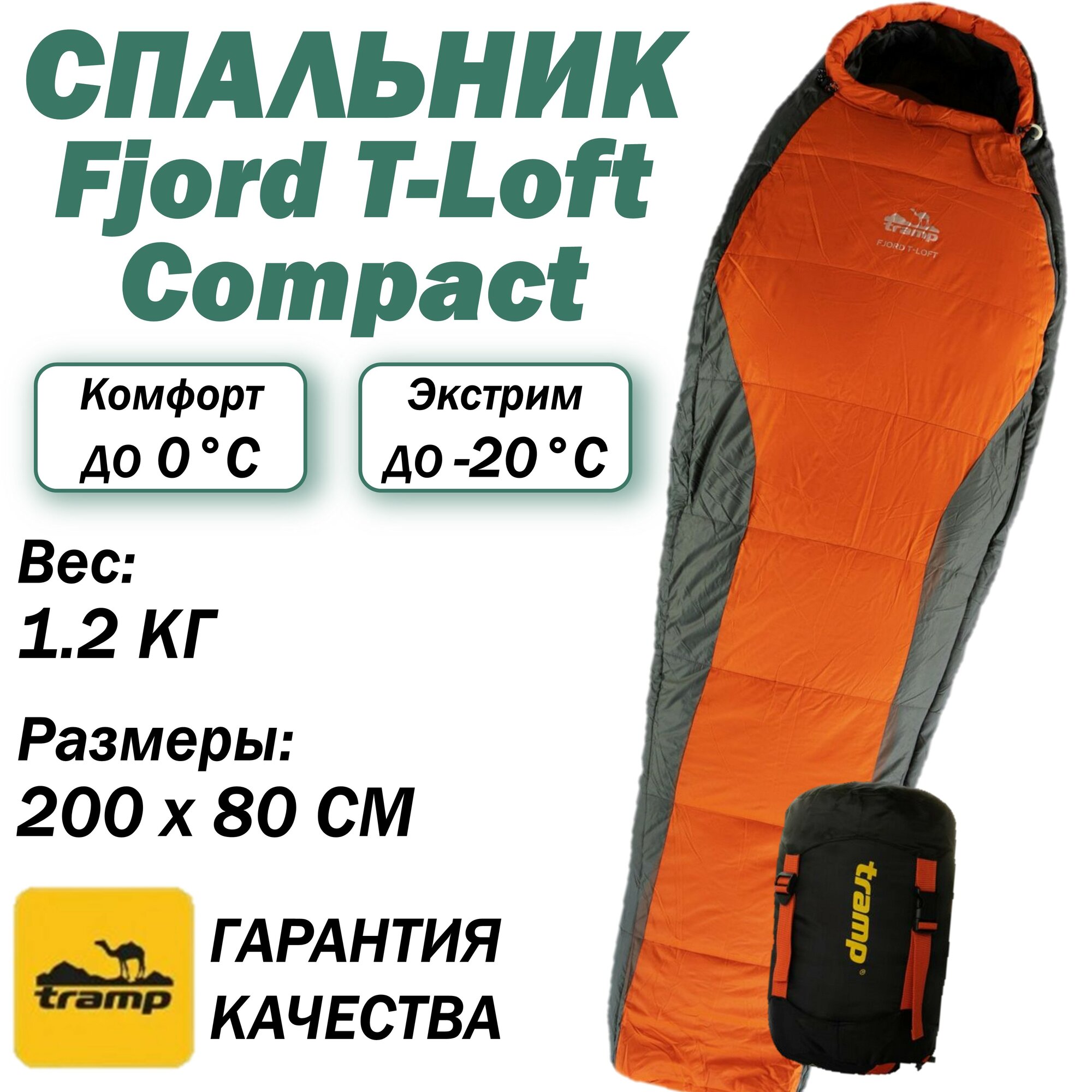 Купить Tramp мешок спальный Fjord T-Loft Compact -20 (оранжевый/серый) / Правый