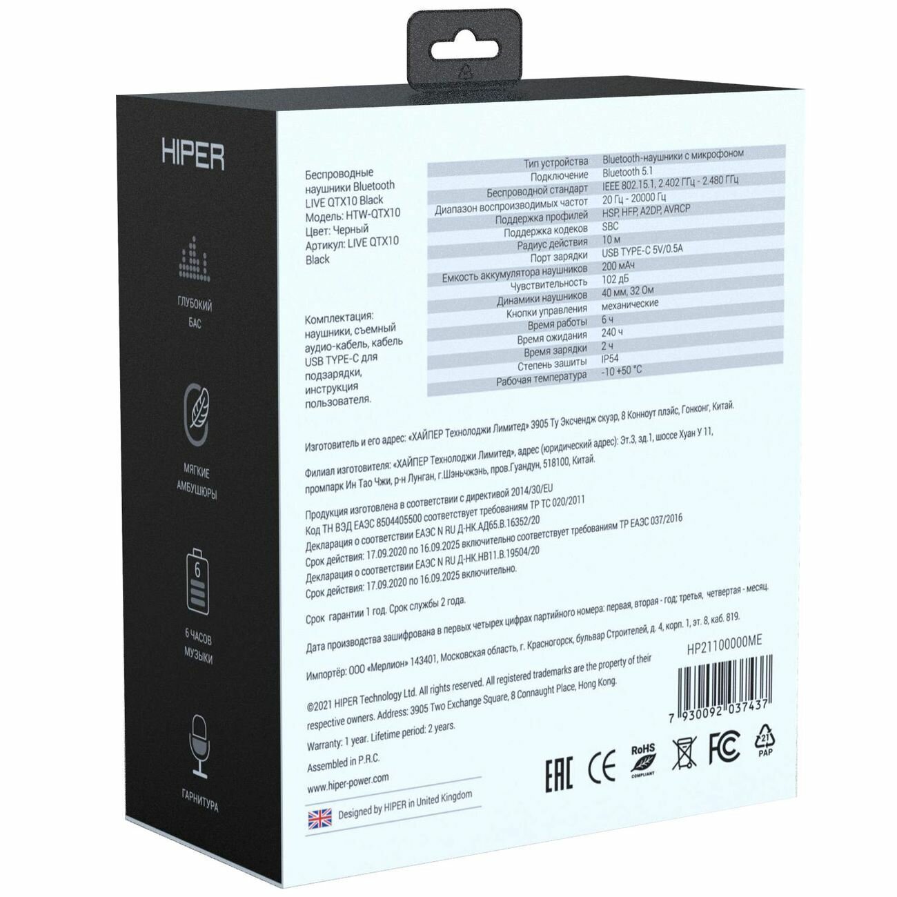 Наушники полноразмерные Bluetooth HIPER Live черный (HTW-QTX10)