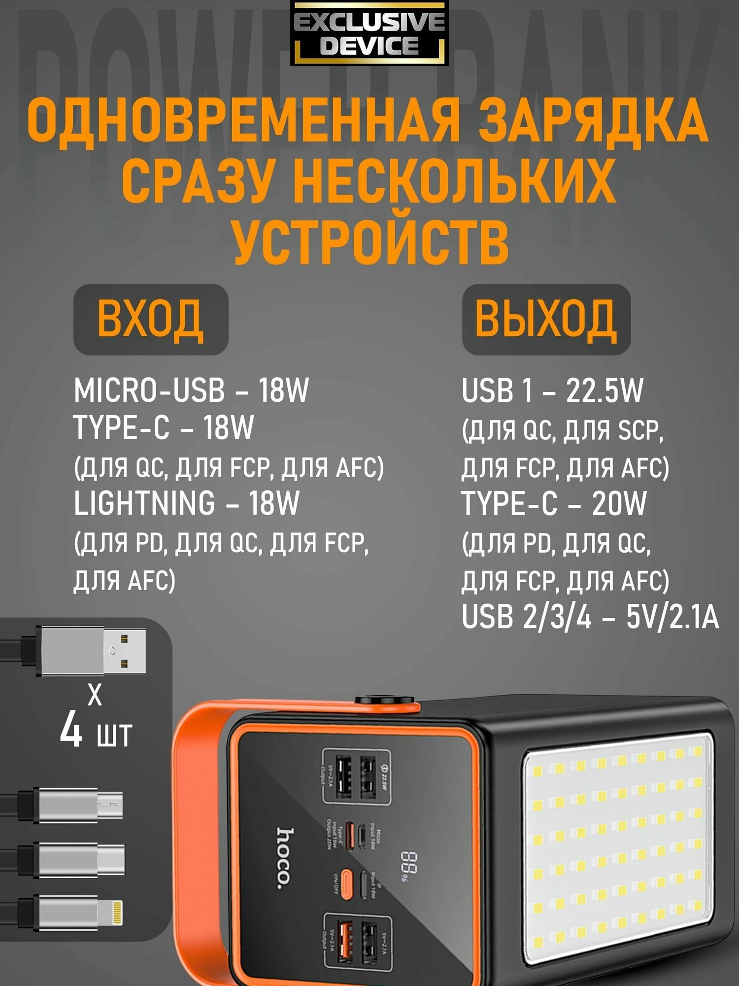 СохранитьПортативный аккумулятор Hoco J107 Super, 90000mAh, 22.5W, черный интересное: