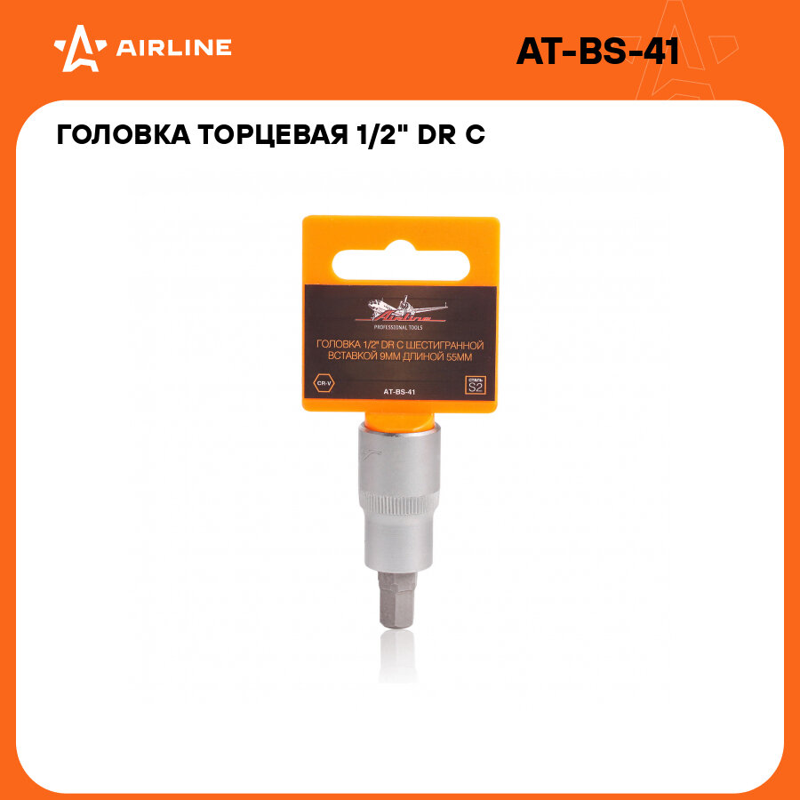 Купить Головка торцевая 1/2" DR с шестигранной вставкой 9мм длиной 55мм AT-BS-41 AIRLINE