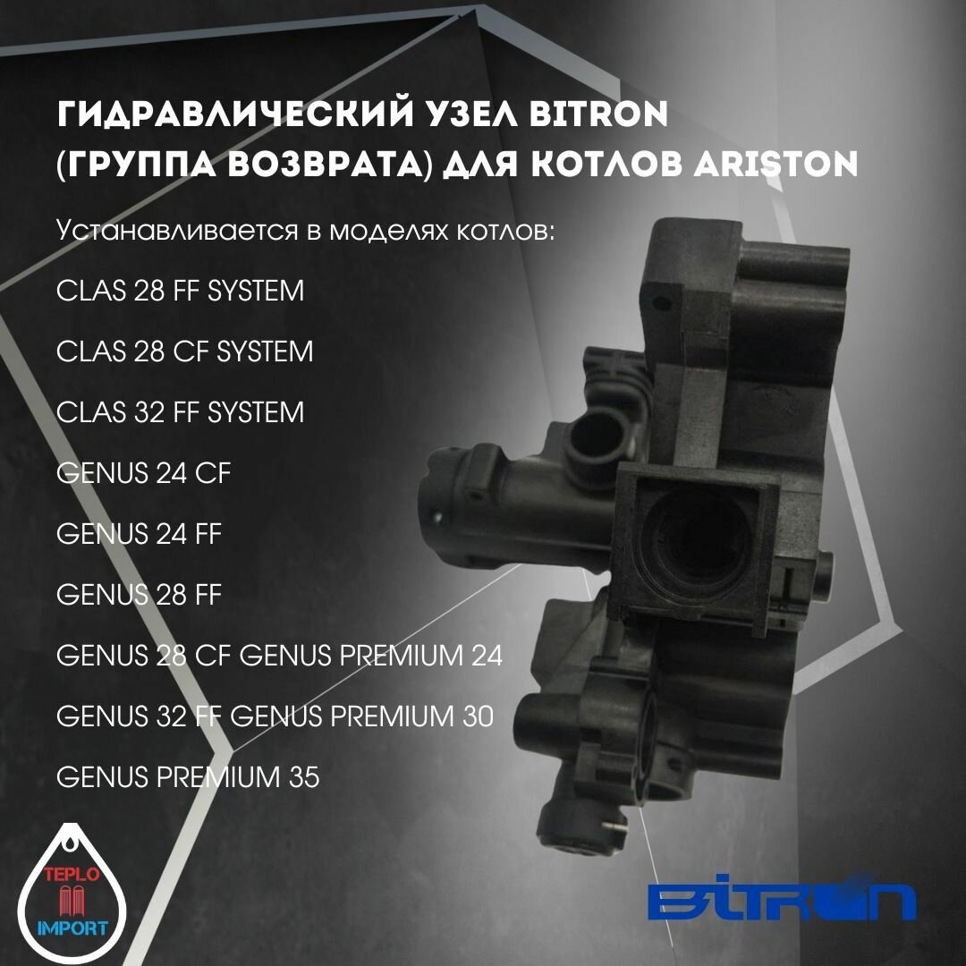 Гидравлический узел Bitron (группа возврата) для котлов Ariston арт 65105322 интересное: