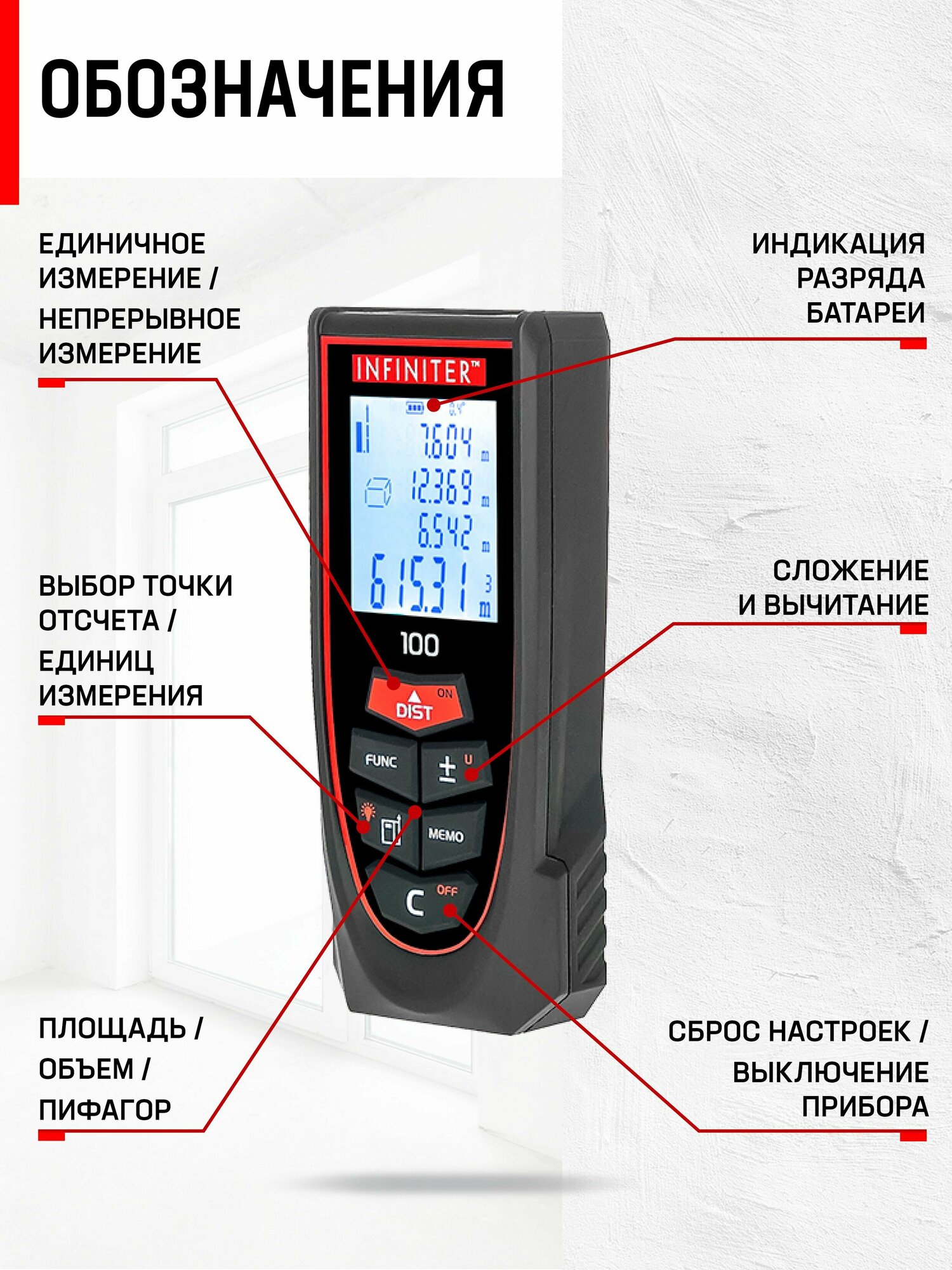 Ниже Вы можете прочитать отзывы на Лазерная рулетка дальномер INFINITER 100, ознакомится с подробными характеристиками, посмотреть интересные обзоры и фотографии на Лазерная рулетка дальномер INFINITER 100.