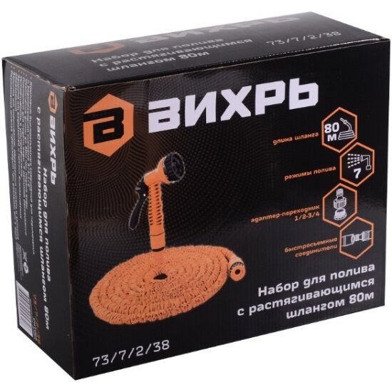 Набор д/полива Вихрь с растягивающимся шлангом 80м /73/7/2/38