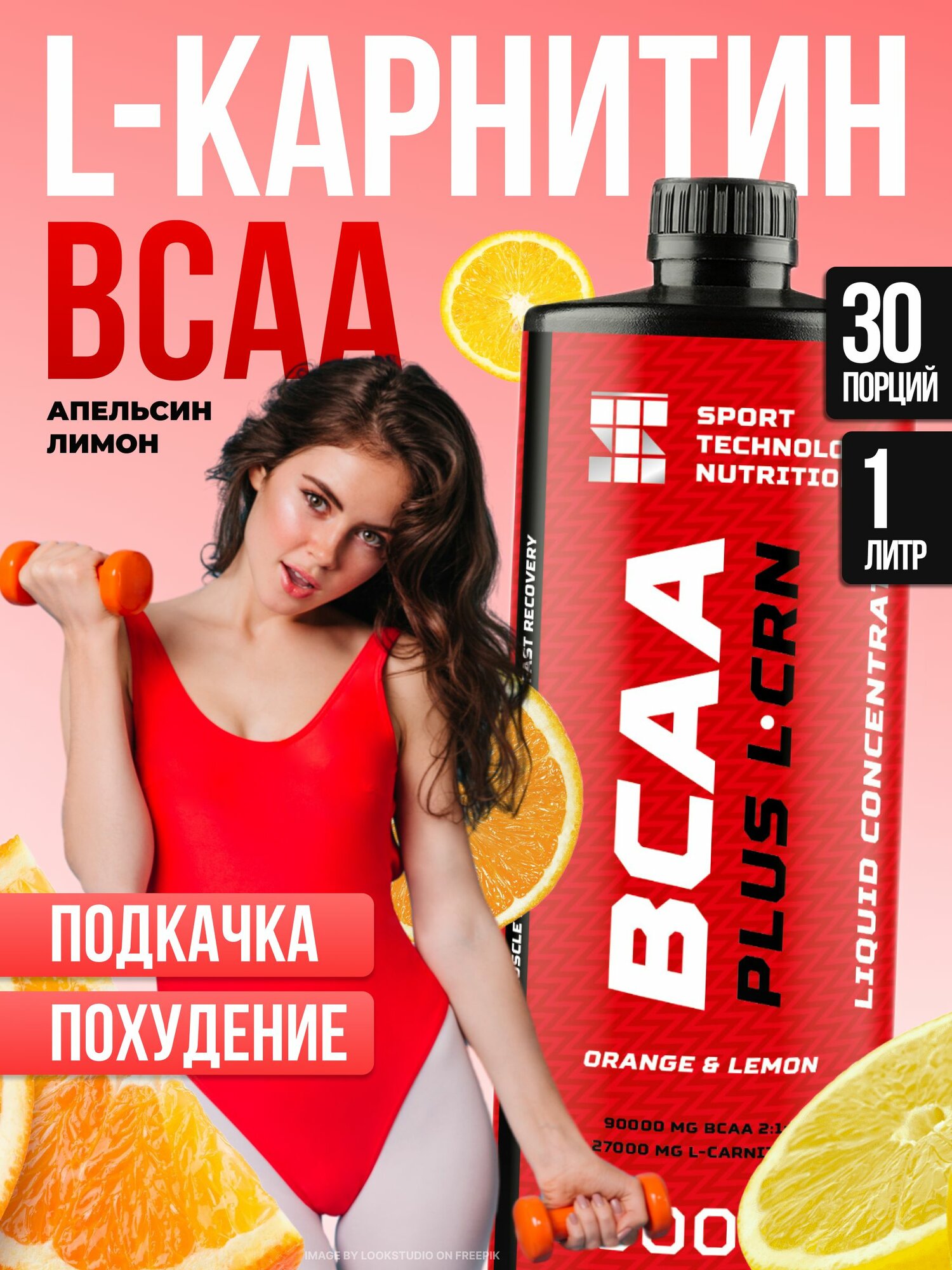 СохранитьАминокислоты BCAA 2:1:1 + L-Carnitine, (БЦАА+Л-карнитин), апельсин лимон, 1л, спортивное питание, для набора массы и сушки, выносливости и восстановления, жиросжигатель интересное:
