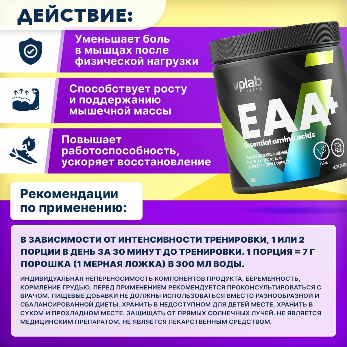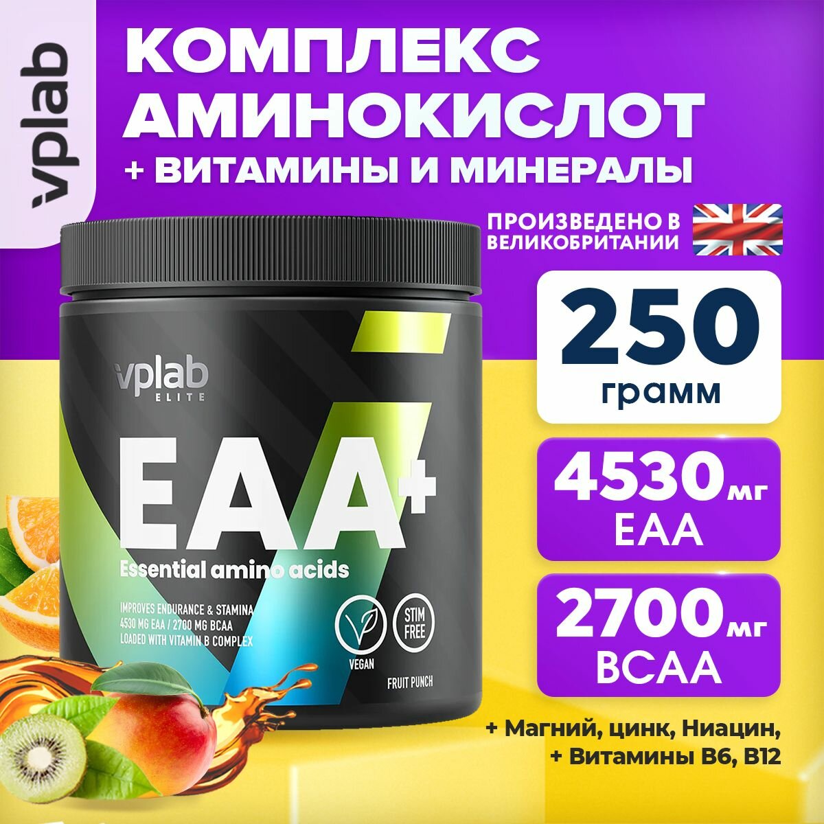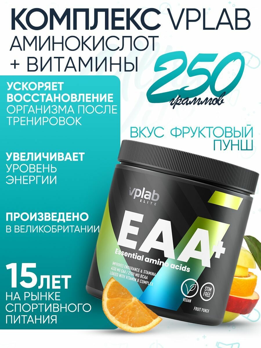 Купить Vplab Elite EAA+, Аминокислотный комплекс для набора мышечной массы и выносливости, порошок 250 г со вкусом фруктового пунша