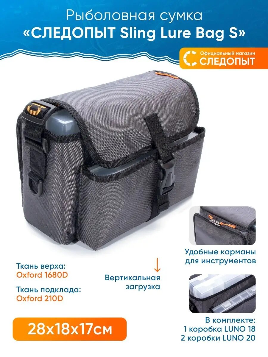 Сумка для рыбалки "следопыт" Sling Lure Bag S, 28х18х17 см, цв.серый + 3 коробки(2 Luno 20/1 Luno 18)