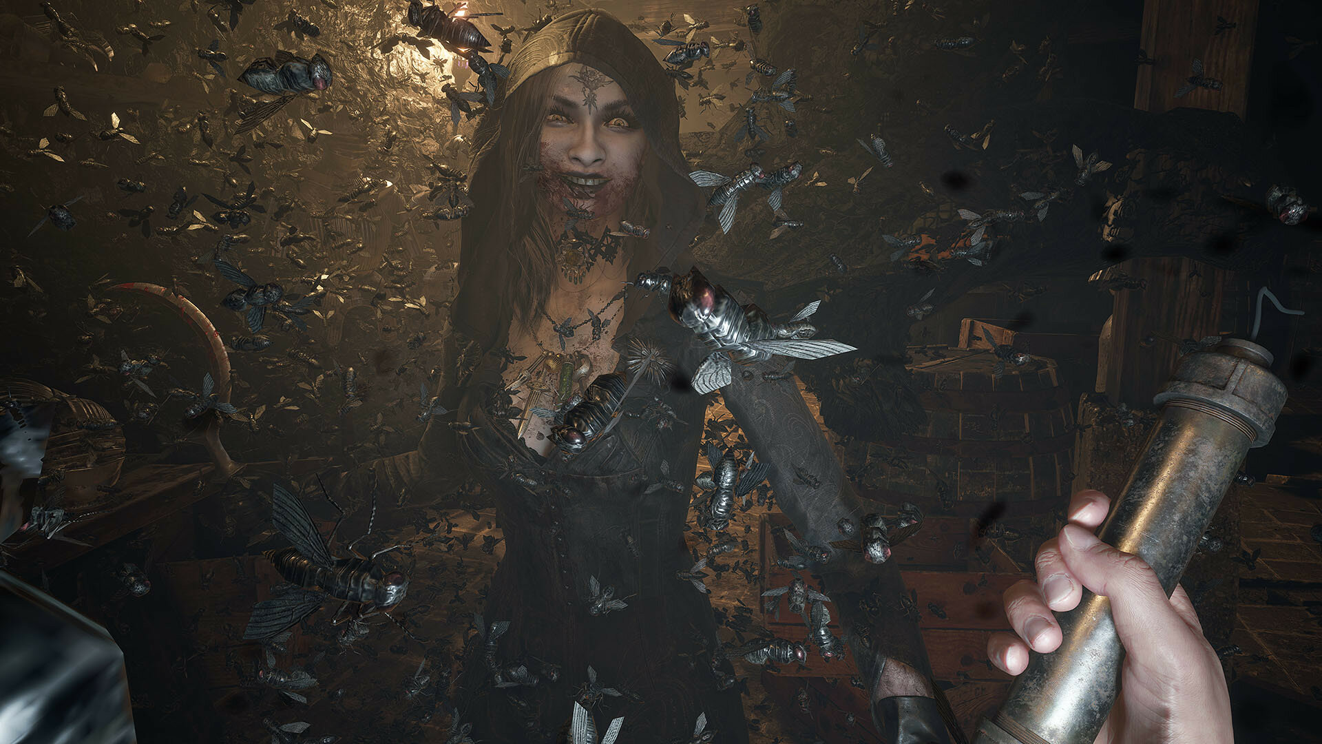 | Минусы: | Первое что мне не понравилось это то что это Ремейк Resident Evil 4, концепция игры в Village таже только представлено по другому, вампиры за место, лас плагас, жирдяй за место торговца, те же печатные машинки, тот же самый замок, да же начало полностью соответствует RE 4, когда мы прибегаем в деревню и на нас нападает орда лас плагаса, в общем тот же RE 4 но только от первого лица |