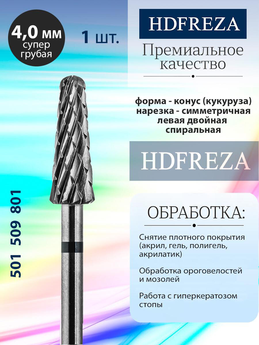 Купить Фреза для маникюра и педикюра HDFREZA твердосплавная для снятия покрытия 501 509 801 Супер грубая черная конус
