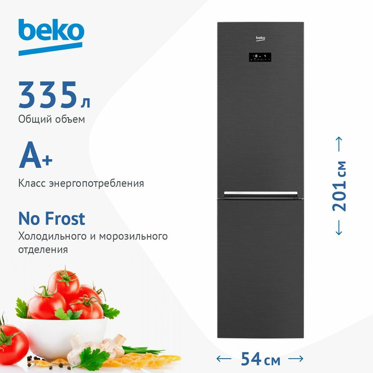 | Плюсы: | функция HarvestFresh, NoFrost, экономия электроэнергии, общий объём 335л, суперзаморозка. |