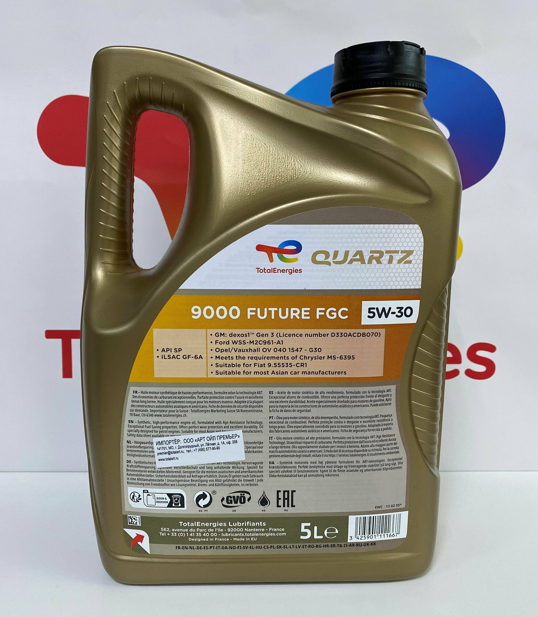 TOTALENERGIES 209056 Масо моторное синтетическое TOTAL QUARTZ 9000 FUT. FGC 5W30, фасовка 5, страна ввоза ЕС