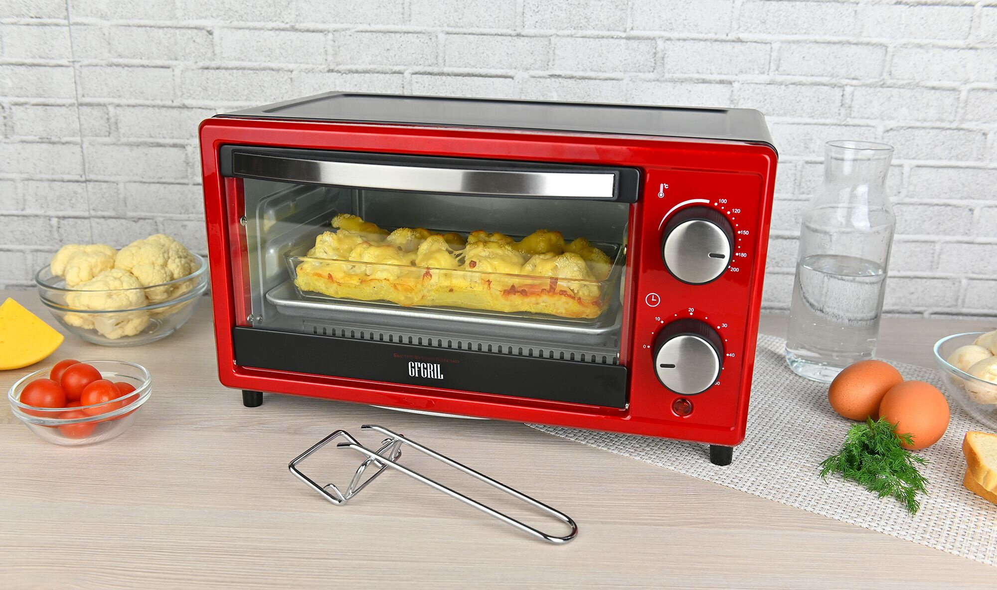 Купить GFGRIL мини-печь GFO-09, 9л , электрическая духовка мини печь 1000 Вт, температура до 250С, духовой шкаф с 2 ТЭНами, таймер на 60 мин, противень, решетка